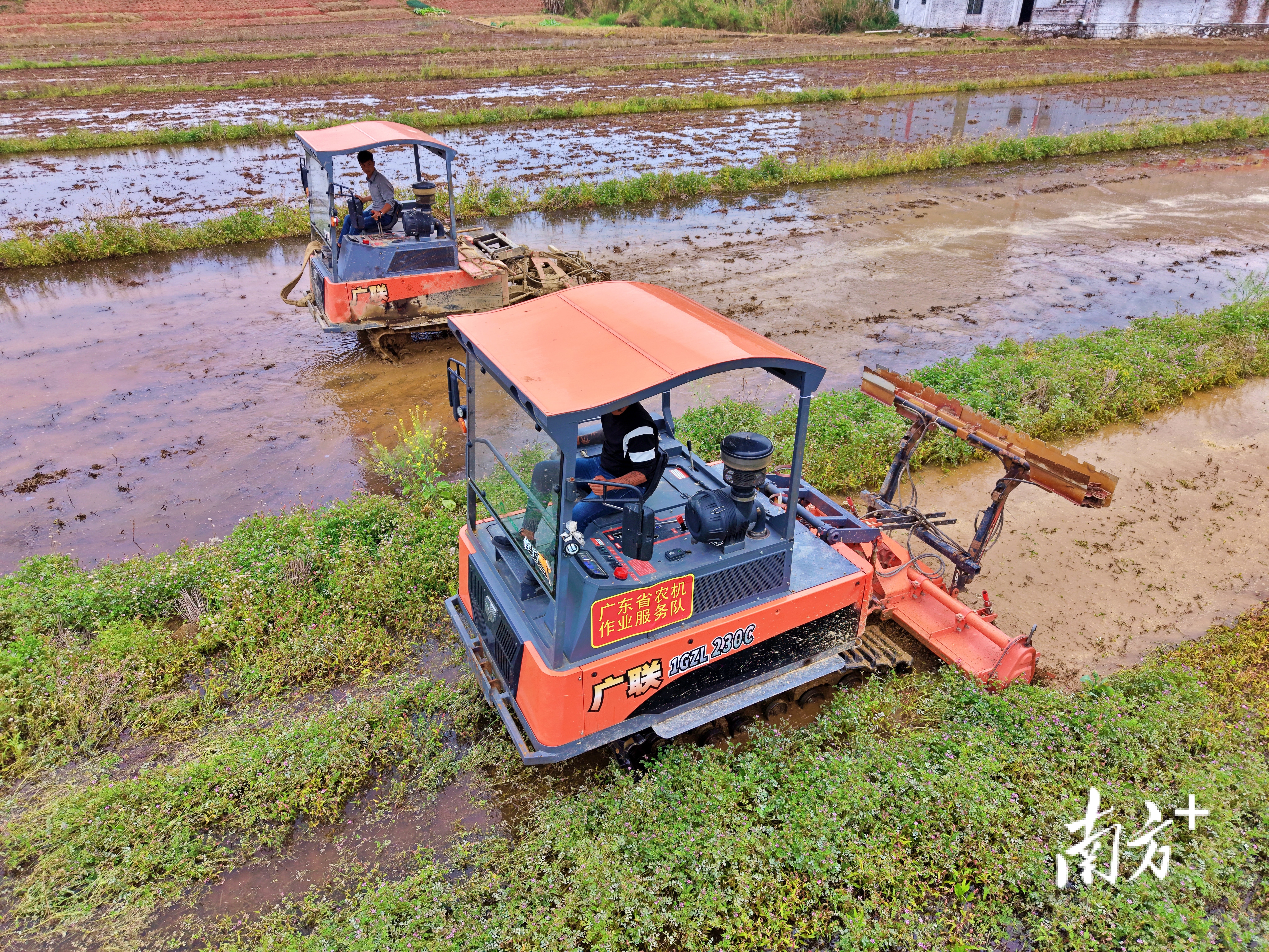 梅州春耕现场会上,农户驾驶农业机械设备在田间工作。南方+记者 杨斐君 拍摄