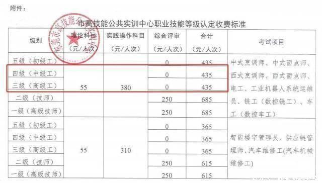 (费用含各级别理论及实践操作科目,一、二级费用含综合评审科目)