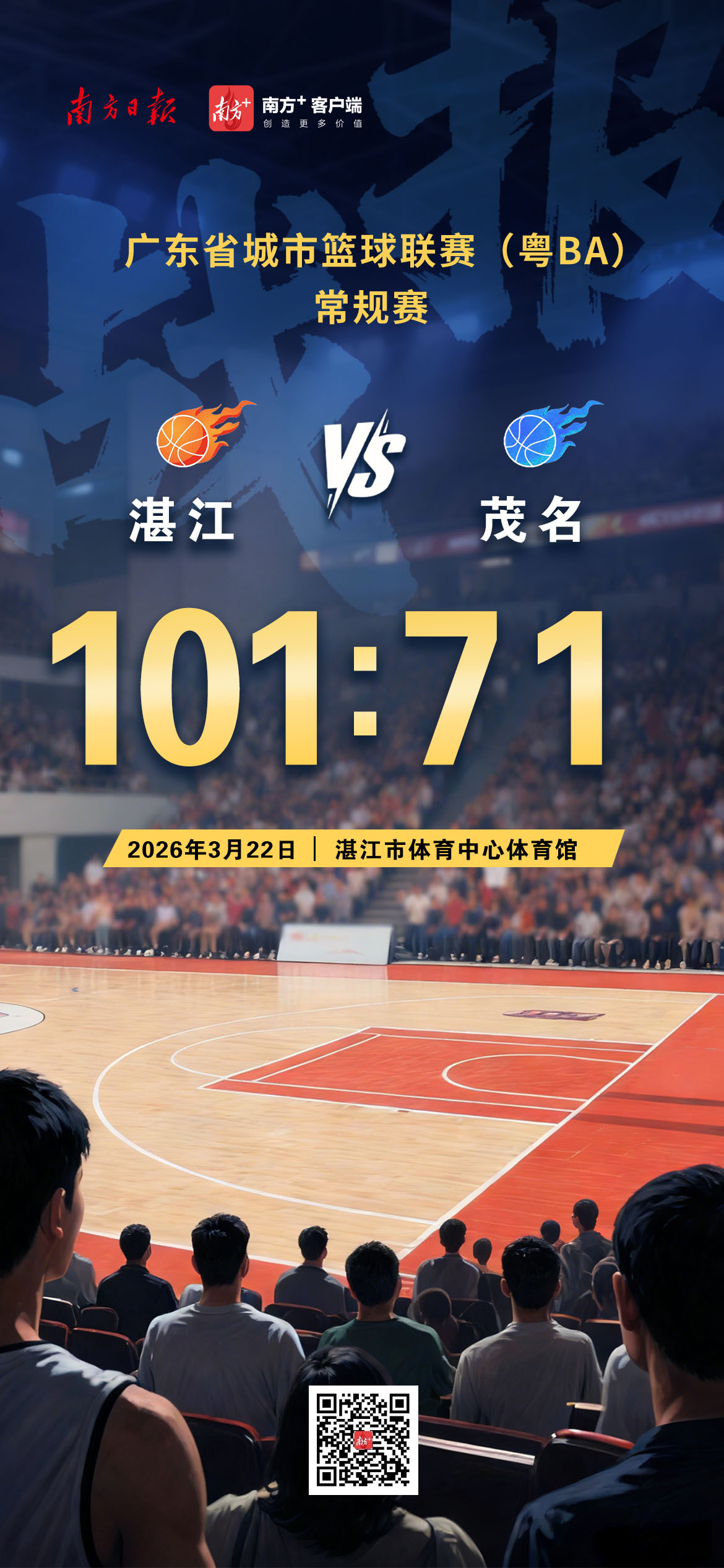 最终湛江队以101:71的比分获胜