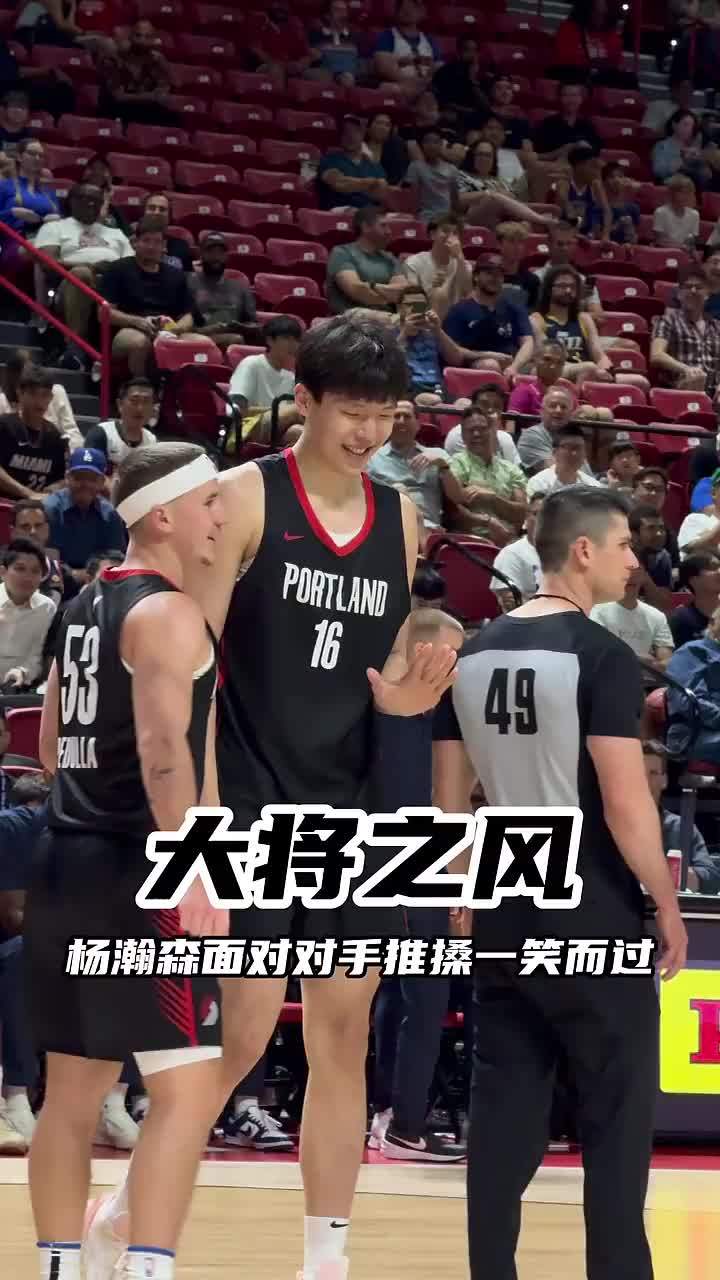 NBA首秀 大将之风!杨瀚森面对对手推搡,一笑而过!
