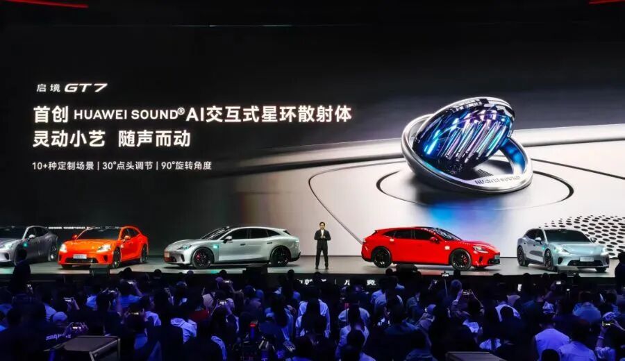 华为乾崑车载技术包括乾崑智驾、乾崑车控、鸿蒙座舱、乾崑车载光和乾崑车云。除了智驾与车控,GT7将搭载新一代小艺智能体和华为首创的Sound AI交互式星环散射体,能做到30°点头、90°旋转,将小艺的交互视觉化,有超过十种情绪效果。同样的设计,也在蔚来的NOMI上出现过。