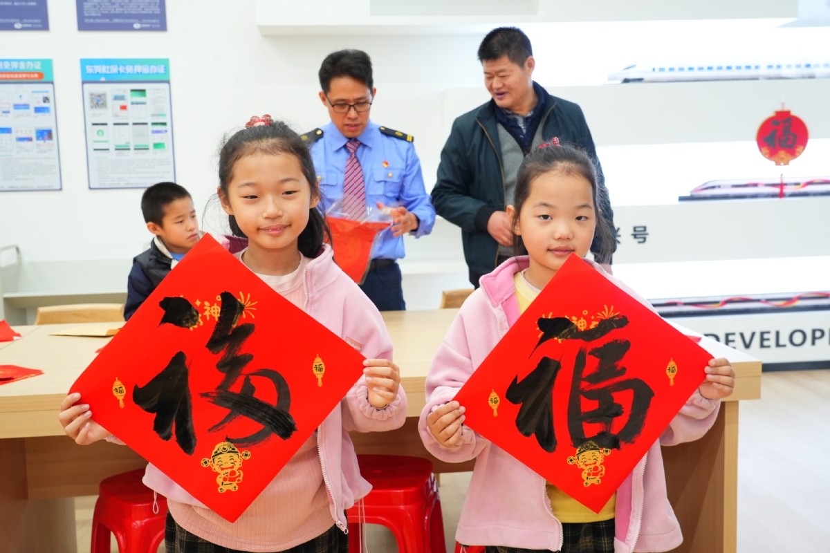 我们看到,在东莞东站,广铁书香驿站的3000册免费书籍、常平镇的非遗手工艺品现场展示、“我的铁路风景”展板和迎春打卡点,让旅客的旅途充满了文化气息。在东莞站,窗花、特色盆栽及打卡点营造出的温馨喜庆环境,让抵达的人第一时间感受到这座城市的温度。