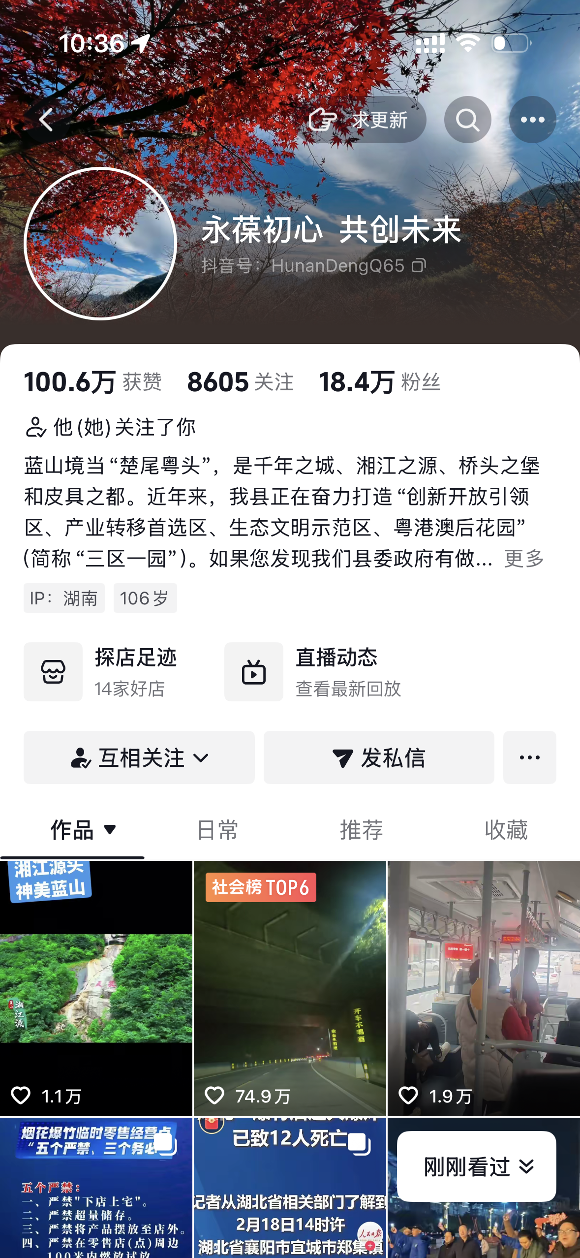 该账号简介中写道,蓝山地处“楚尾粤头”,是千年之城、湘江之源、桥头之堡和皮具之都。同时明确标注了县委办、县政府值班电话,直言“如果您发现我们政府系统做得不好的工作,请及时拨打值班电话,我们彼此打开一扇信任之窗,建立互动工作机制”。