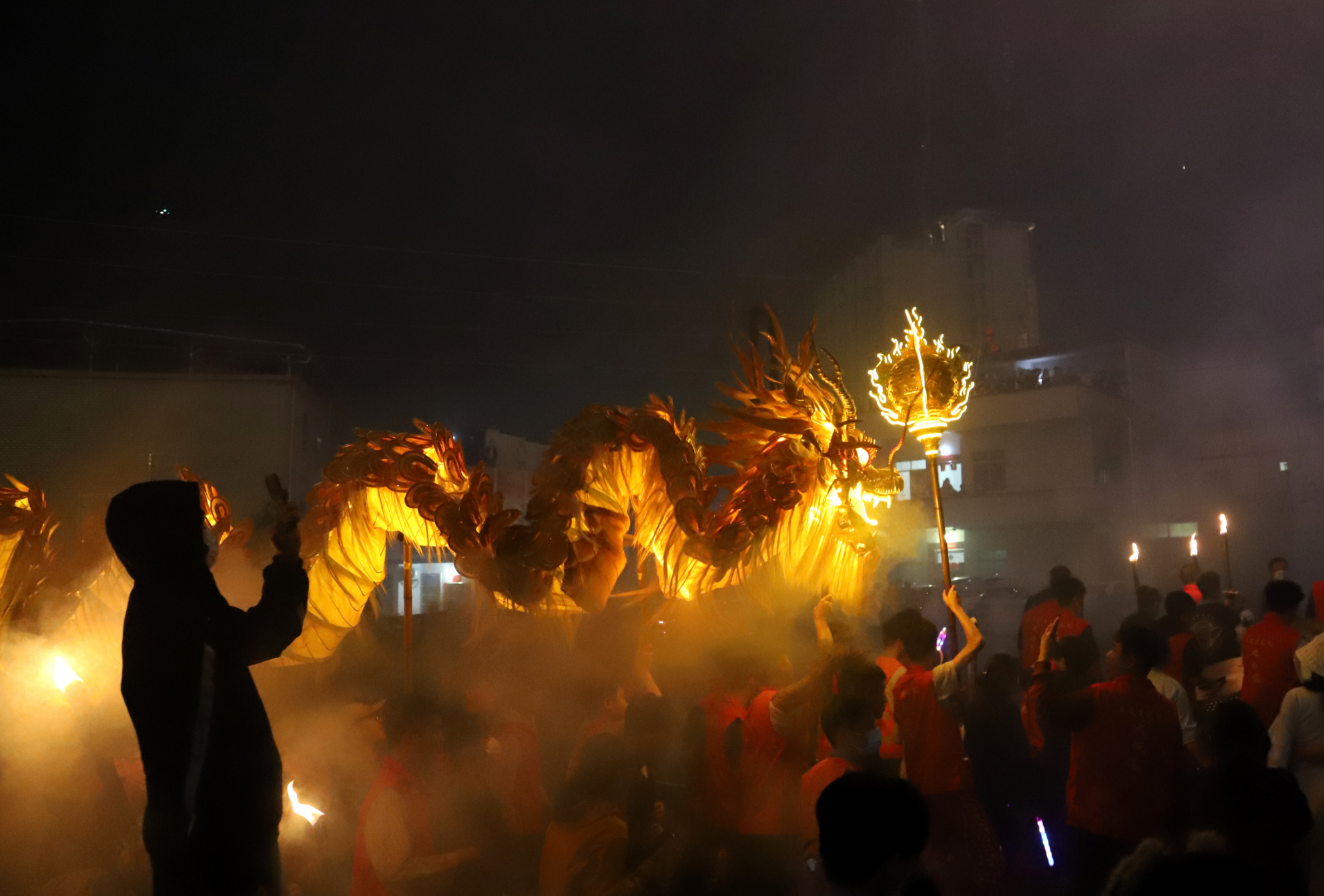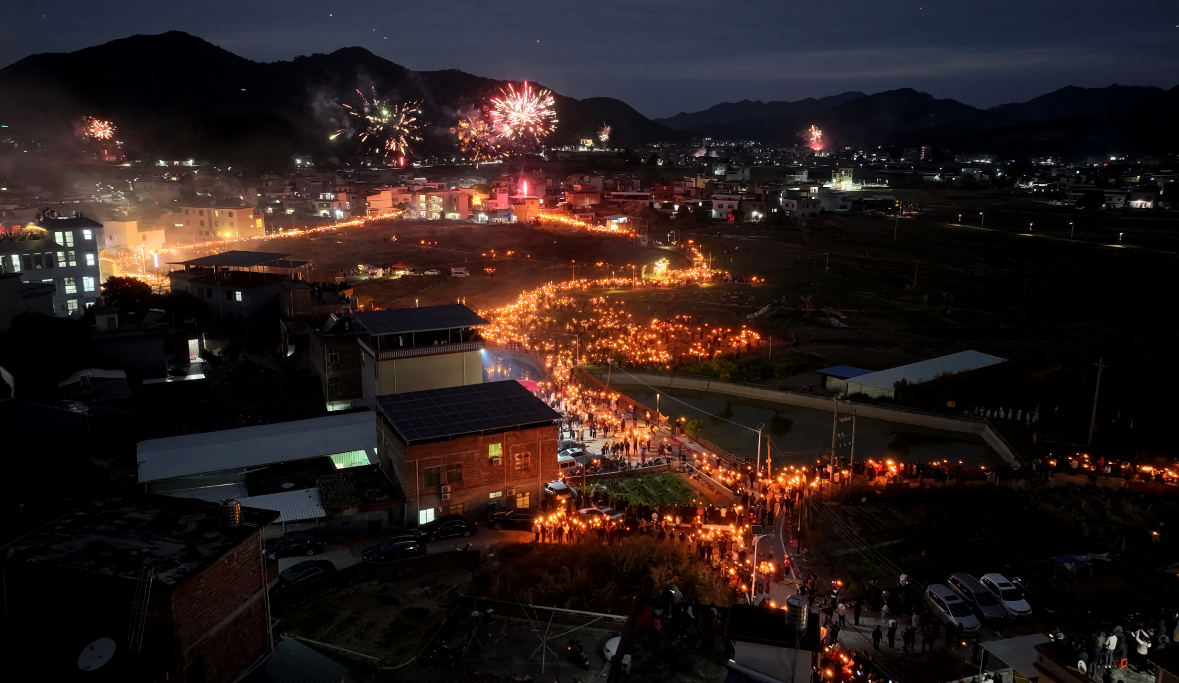 现场直击:千米“火龙”震撼夜空