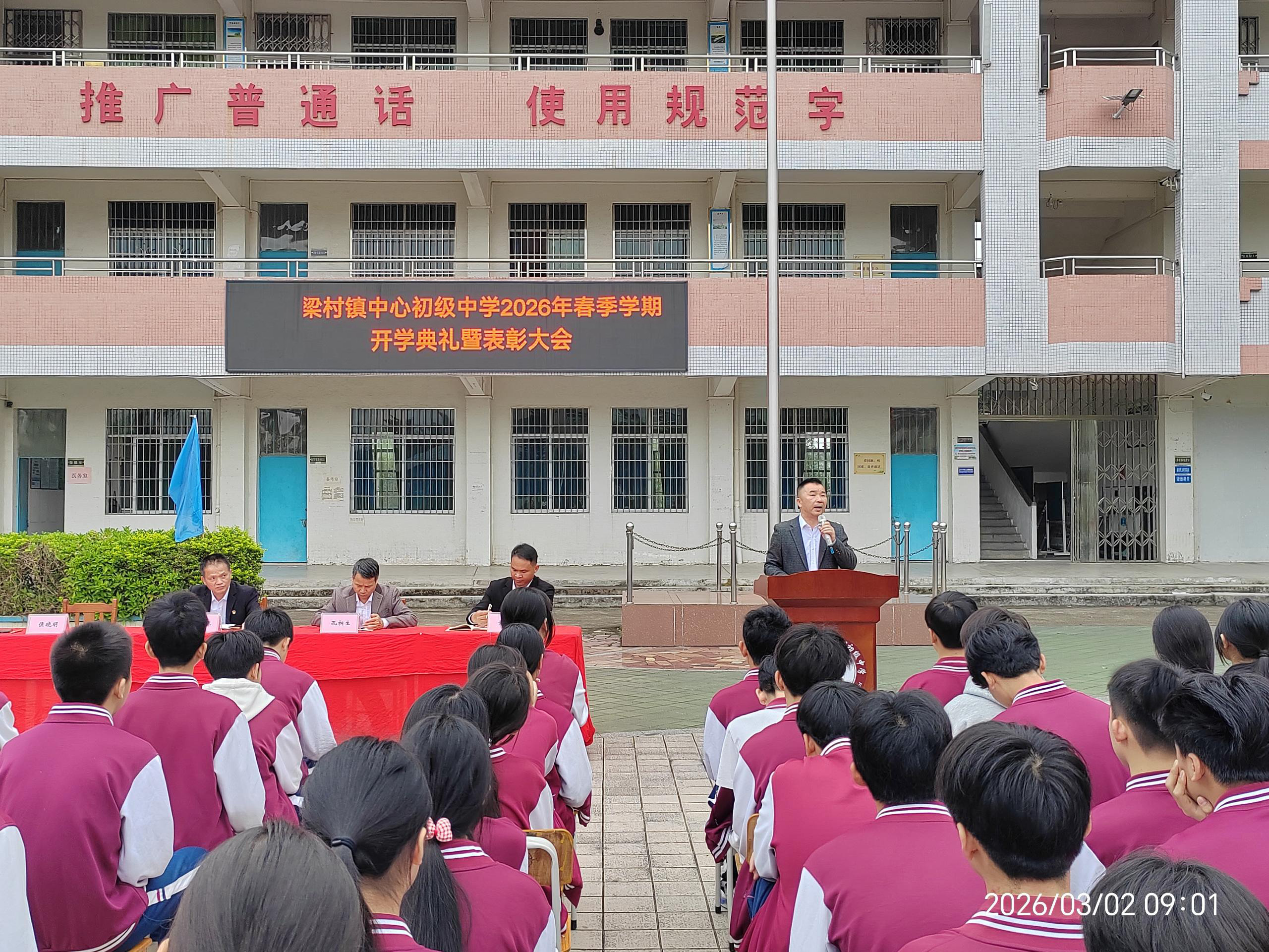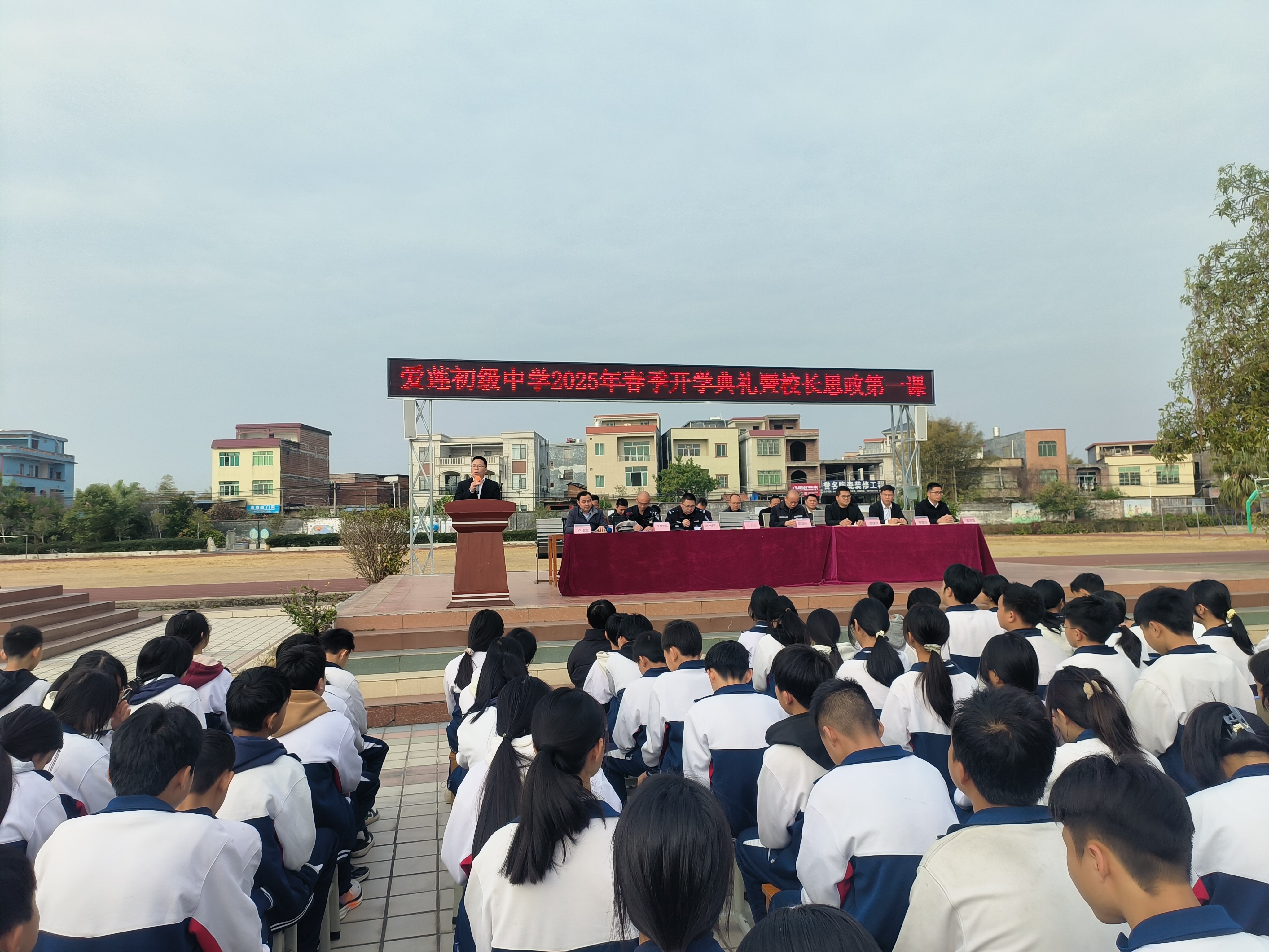 观塘初级中学党支部书记、校长梁建武同志在新学期寄语中表示:希望同学们以“德”为先,做品行端正之人;以“智”为基,勤学善思;以“体”为本,身心健康;以“美”为韵,心怀大美;以“劳”为荣,努力实现德智体美劳全面发展,不负青春、不负时代、不负韶华。