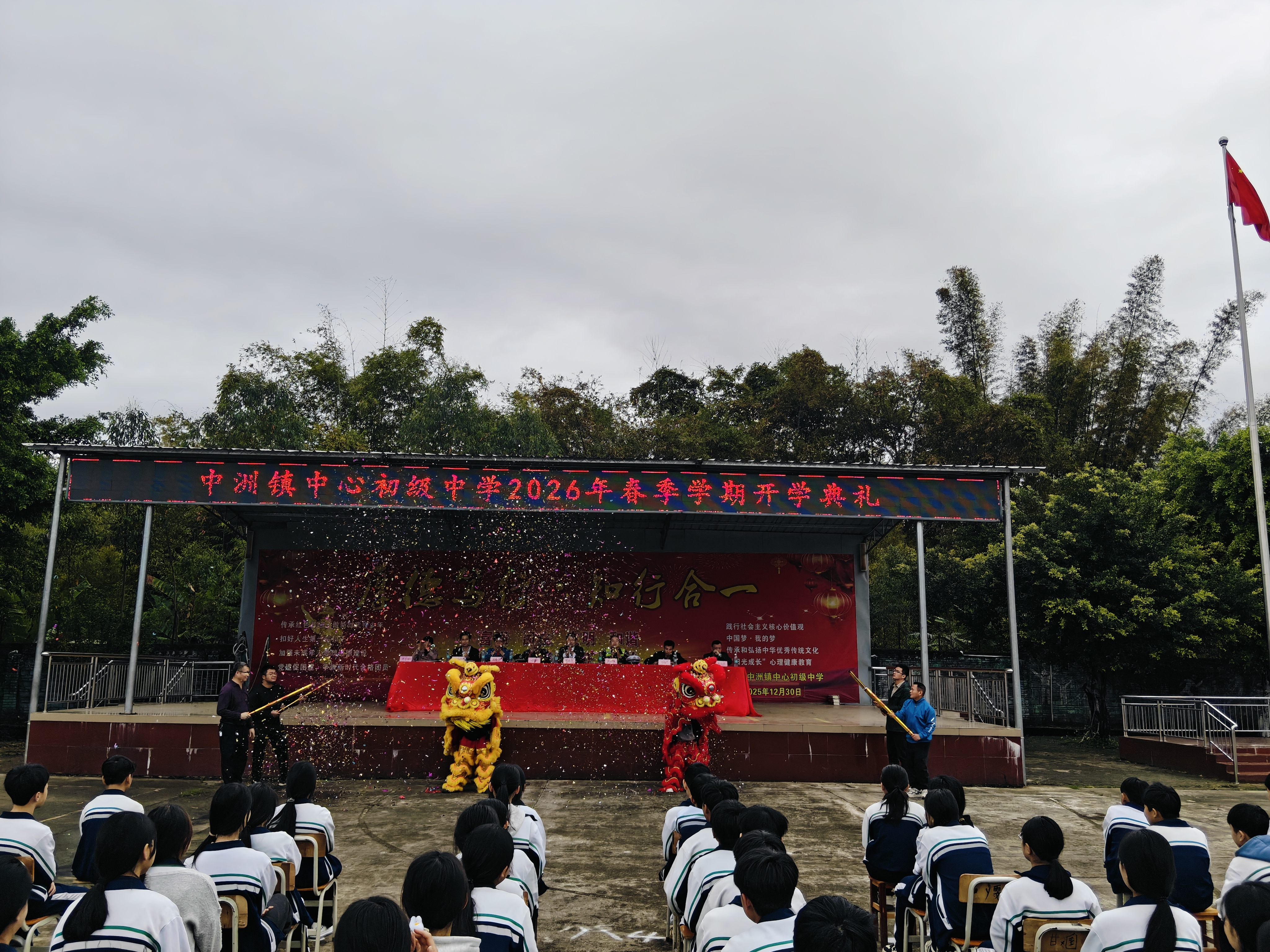 春季学期开学首日,中洲镇初级中学举行“智汇未来·梦想启航”开学典礼,表彰优秀师生,激励全校以饱满热情投入新学期,推动学校高质量发展。