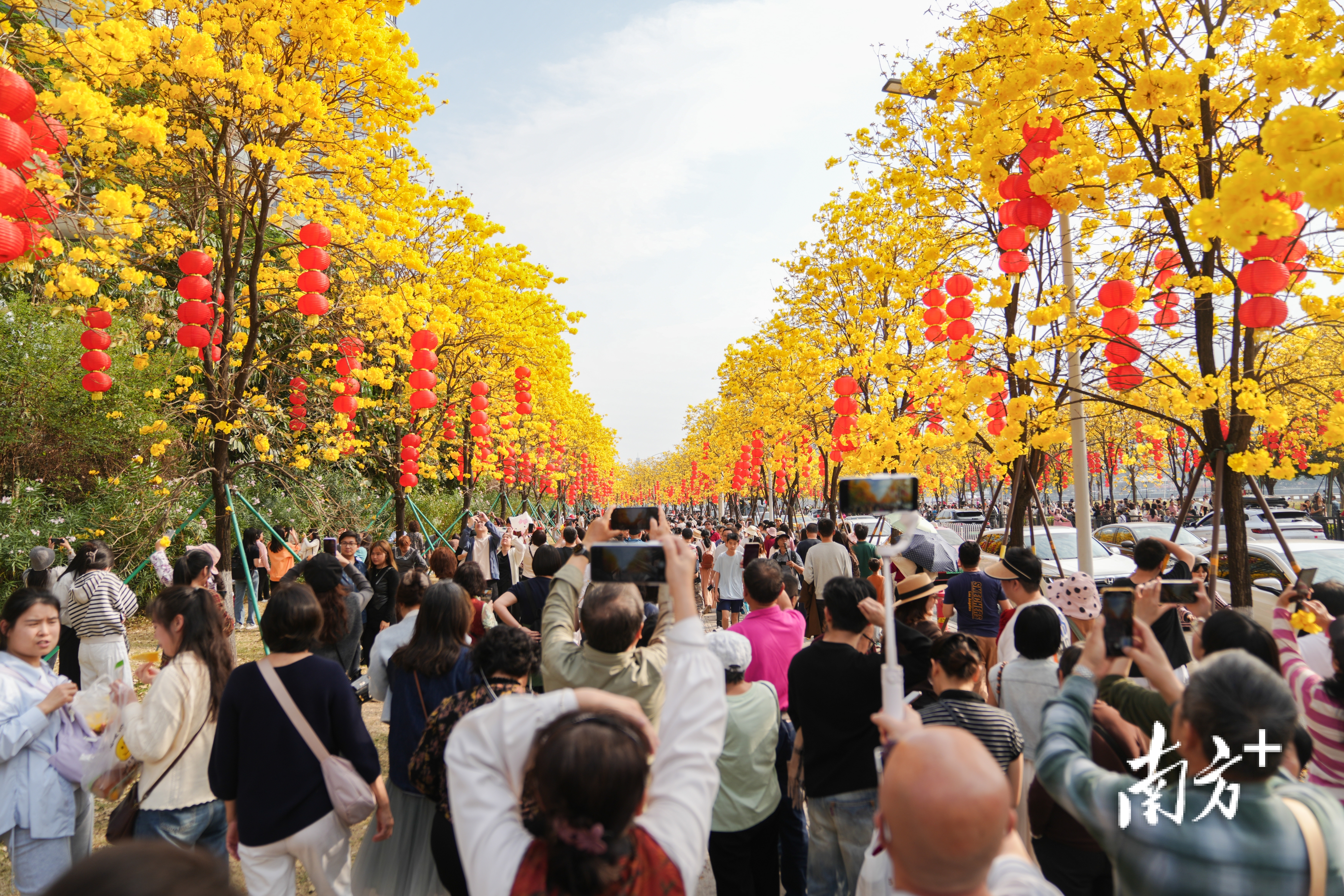 若未能赶上假期也不必担心,黄花风铃木花期预计可持续至3月。周末时分,不妨抽空前来赏花拍照,感受珠江畔的早春气息。