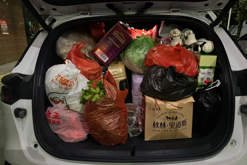 谁懂啊!后备箱一打开,全是爸妈塞的“爱意超载”,各种袋子装的干货、零食……甚至连雨伞、鞋子都给备上了,生怕我在外面吃不好、用不好。网友@宋大雷