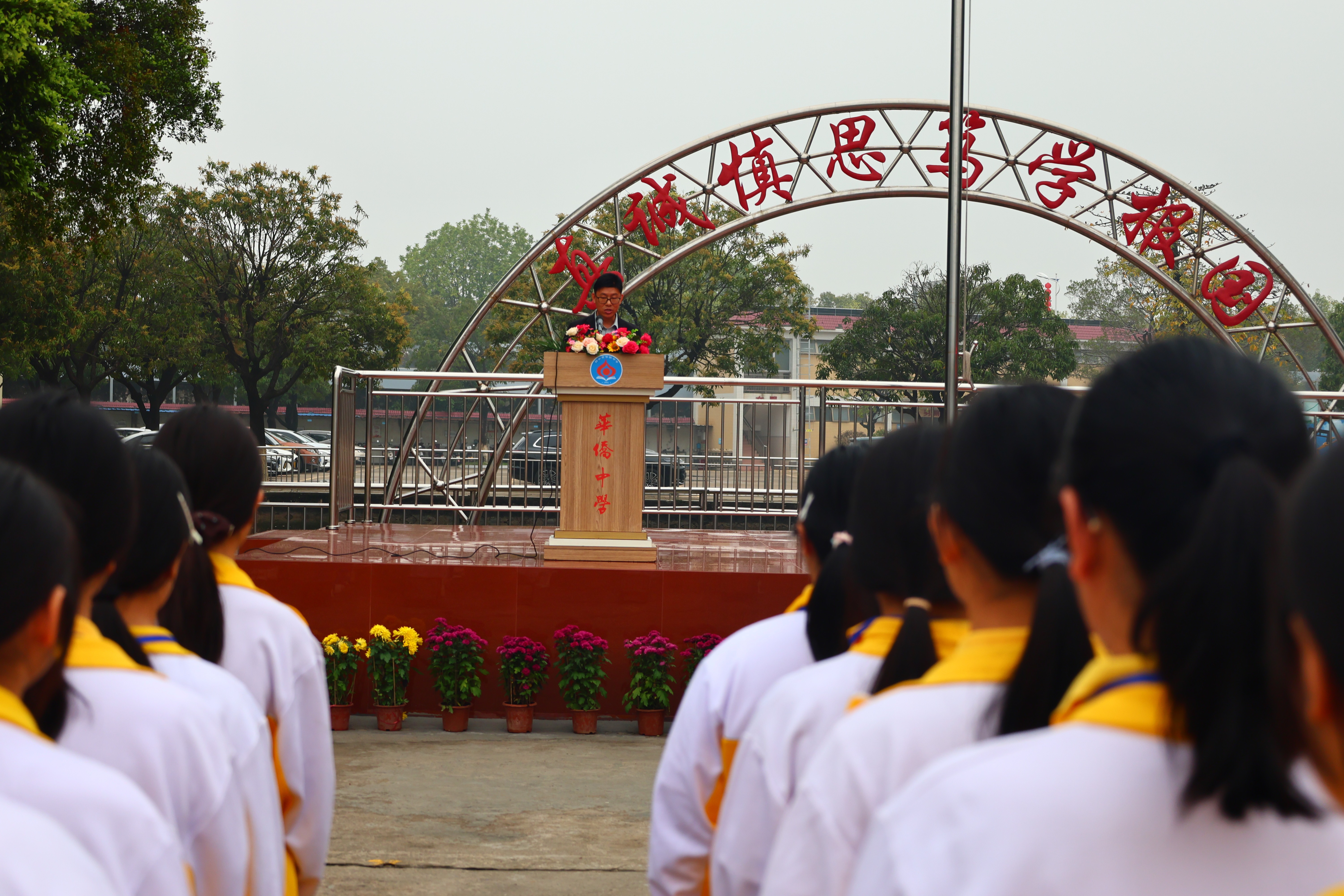 今天我以“爱国立心、勤学立身、创新立行、担当立业”与全体师生共勉。爱国是最深沉的情感,是立身之本、成才之基。学习是青春最厚重的底色,奋斗是少年最亮丽的姿态。创新是民族进步的灵魂,是国家发展的动力。希望同学们珍惜时光、自律自强,课堂专注思考,课后勤于实践,不畏难、不松懈,以滴水穿石的毅力积累知识、提升素养。担当不在远方,就在一言一行。希望同学们以“一马当先”的锐气、“马不停蹄”的韧劲,成长为堪当民族复兴大任的时代新人。