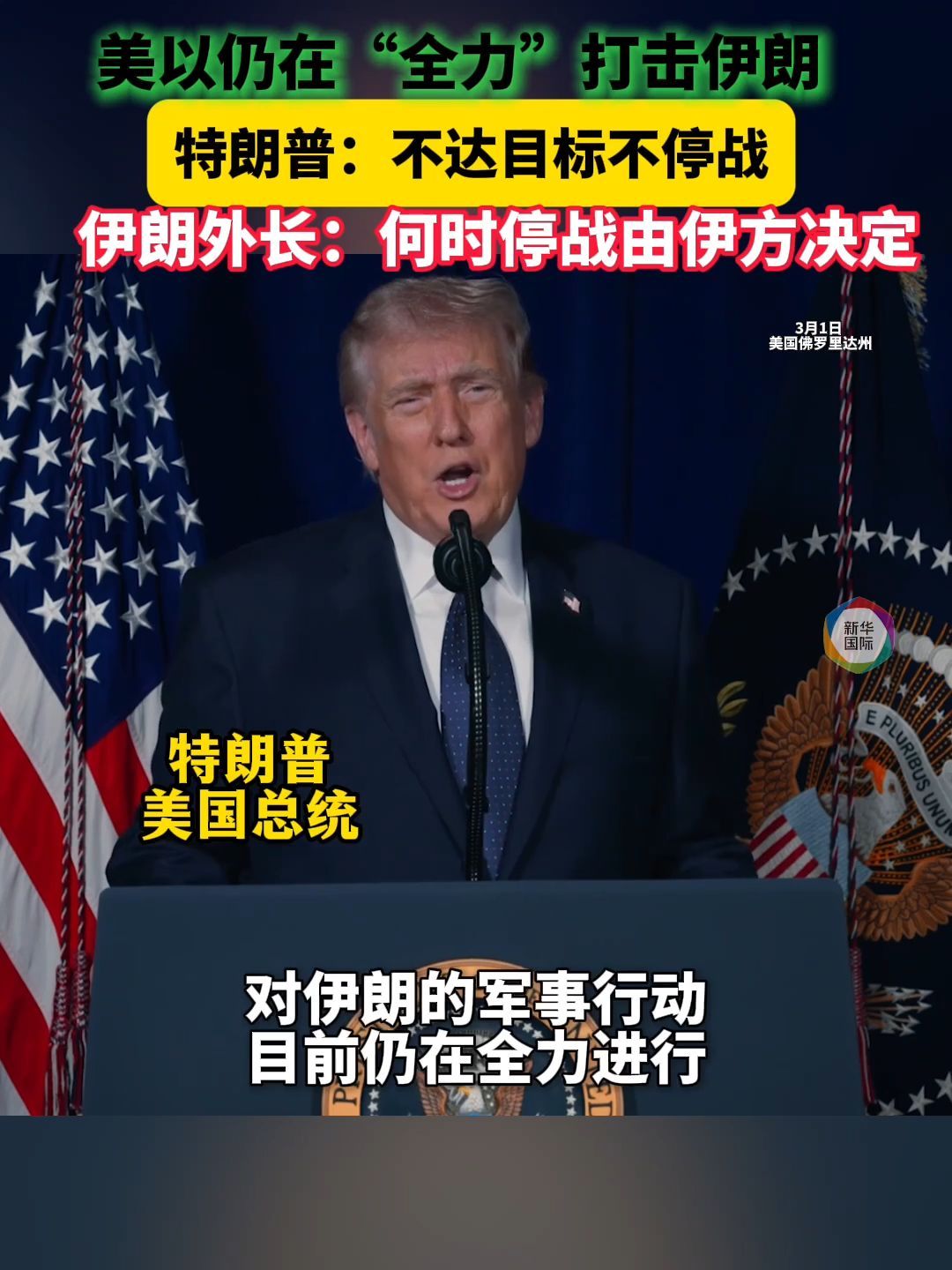 特朗普:不达目标不停战 伊外长:何时停、怎么停由伊朗定