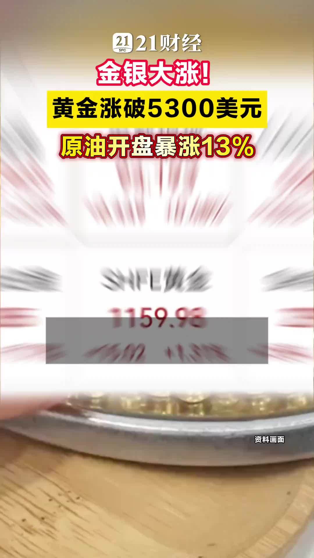 金银大涨,黄金涨破5300美元,原油开盘暴涨13%