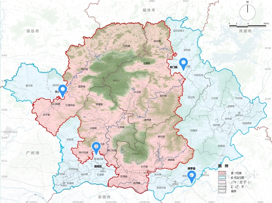 惠州市博罗县罗浮山管委会、石湾镇、园洲镇、湖镇镇、长宁镇、横河镇;龙门县南昆山管委会、永汉镇、麻榨镇、龙华镇、地派镇、龙潭镇。