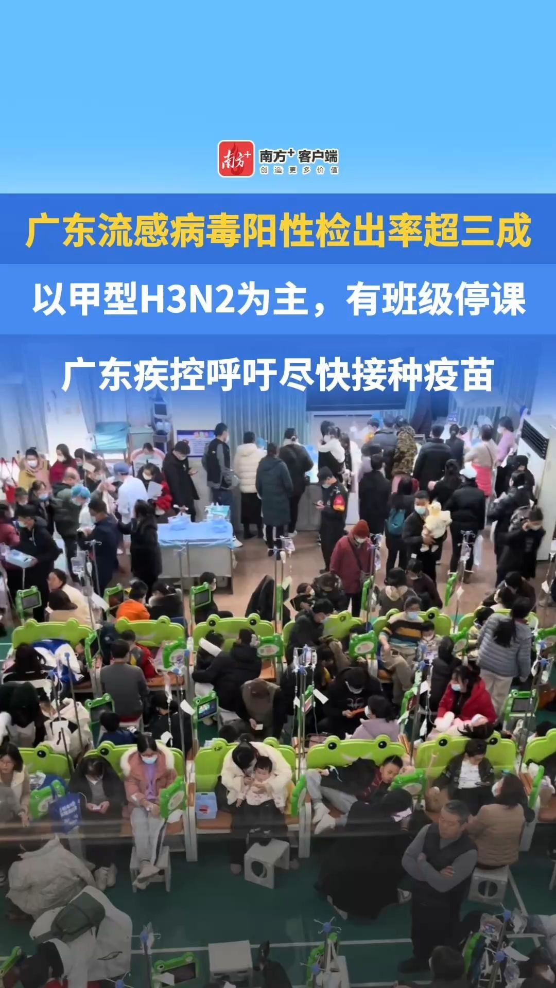 广东流感病毒阳性检出率超三成,以甲型H3N2为主,有班级停课,广东疾控呼吁尽快接种疫苗