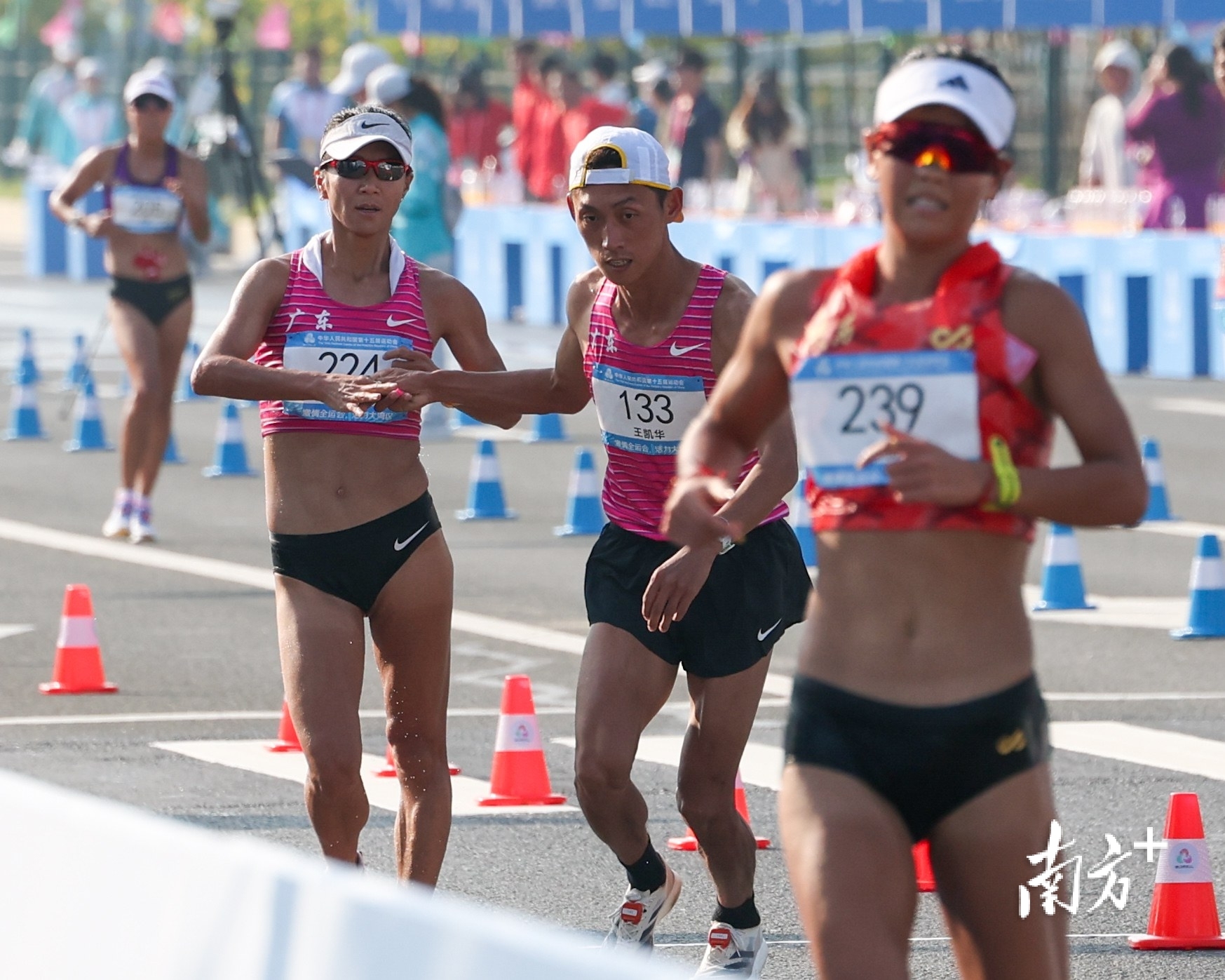 11月17日,十五运会马拉松竞走混合接力比赛在珠海市金湾区金湾路举行。这项去年才进入奥运会的新兴项目,也是第一次出现在全运会的赛场上,最终北京队的奥运冠军杨家玉和新星石升吉搭档,以2小时58分01秒完赛,获得该项目的全运首金。广东老将刘虹和王凯华最终排在第四位,依旧无缘领奖台。