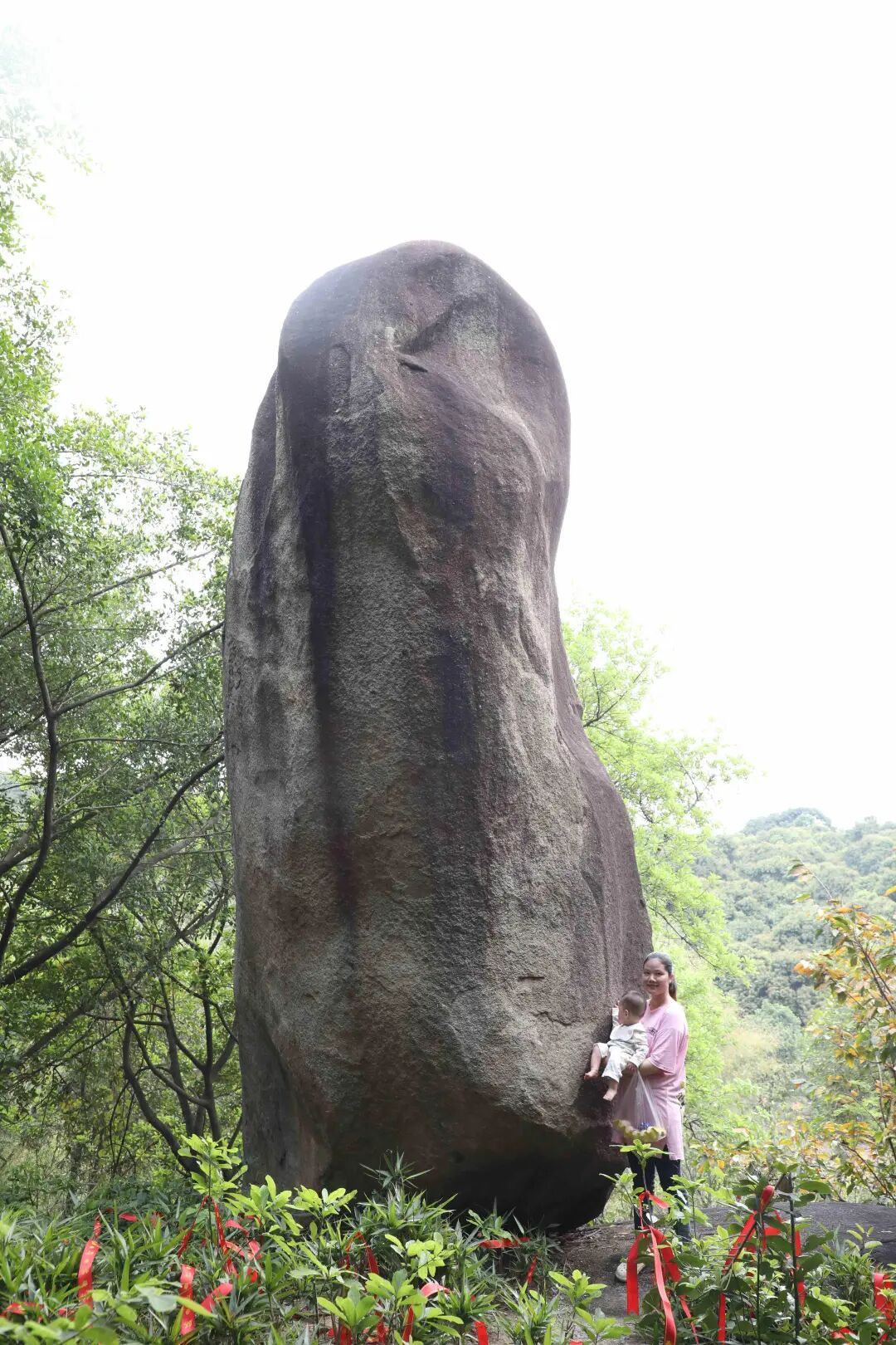 登到山顶,伸手触摸麒麟石