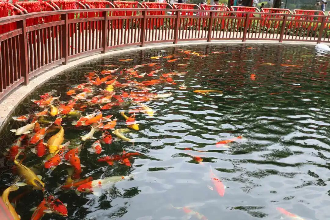 古色古香的鱼池中