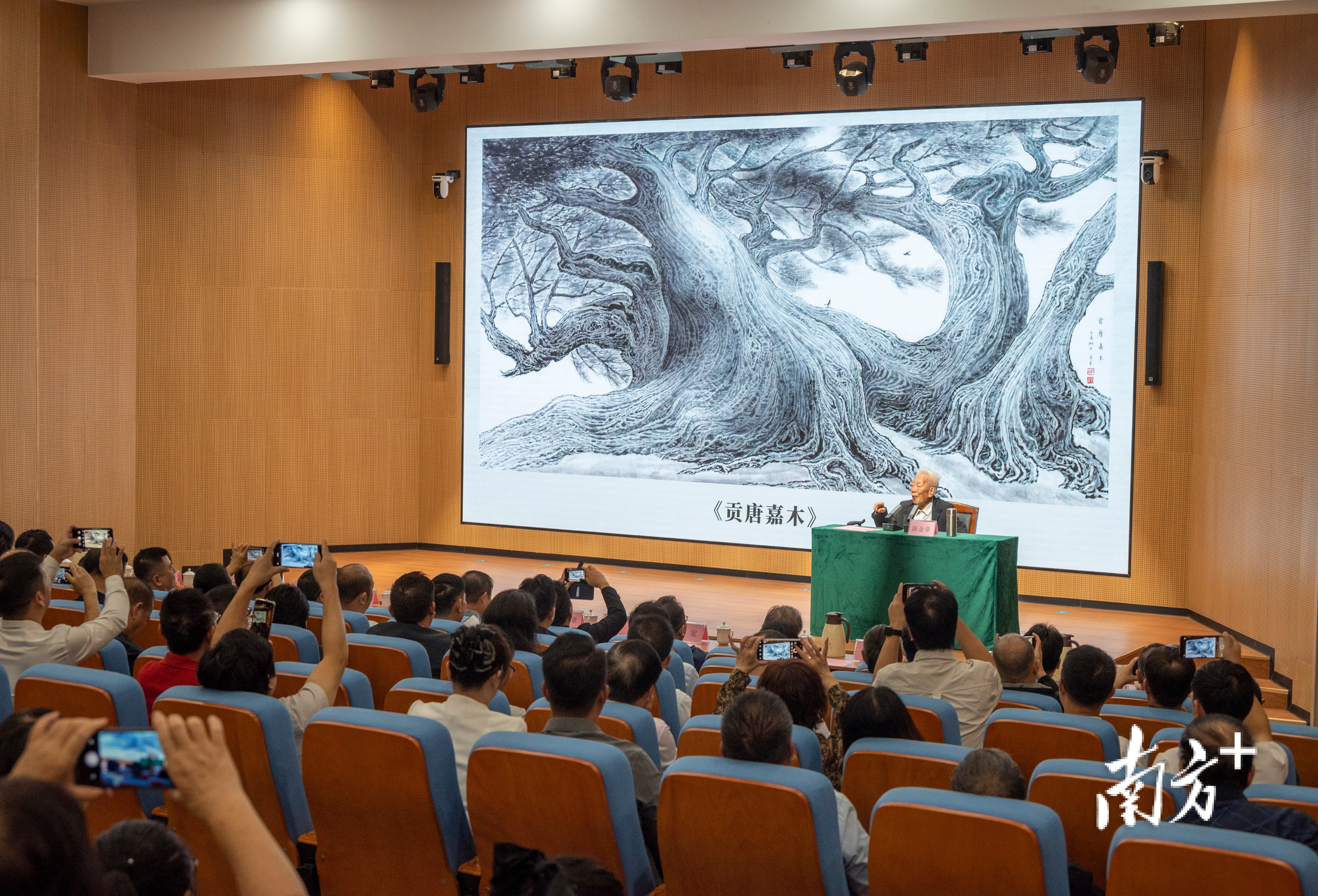 “我97岁了,希望能有再多点时间为国家画些画。”10月26日上午,电白区“名家大课堂”活动走进茂名陈金章美术馆报告厅。当代岭南画派代表人物陈金章亲临授课,他从《南方的森林》《贡唐荔木》等作品的创作经历出发,讲述了自己对于艺术创作的理念和思考,也让大家对他的家国情怀有了更深的了解。