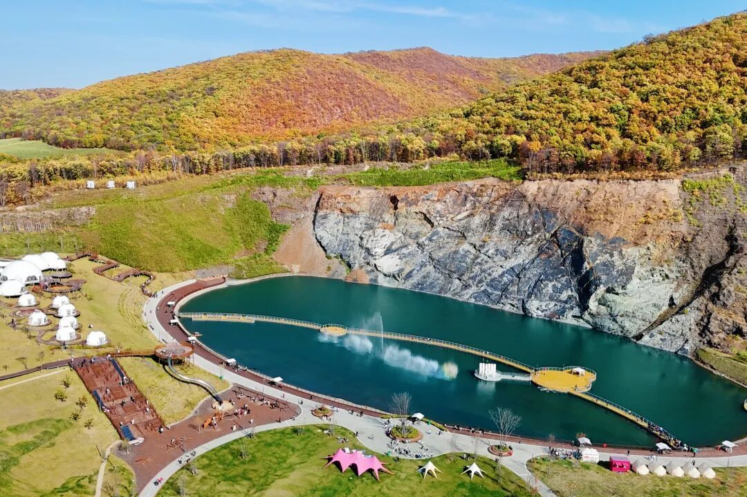 据了解,翡翠湖的前身由于多年违规开采造成山体裸露,表层植被被严重破坏,边坡底部形成采坑,而采坑剥离的固体废弃物堆放占用了大量土地,地质环境受到了严重破坏。为了营造健康宜居的生活环境,宝清县毅然决然进行问题整改。在整改过程中,发现矿坑区域内水体受矿物质影响,呈现出蓝宝石般的色彩,对此,宝清县创新思路、因地制宜,经过矿山生态修复后重新设计,这里也成为了全省首家立足于“矿上遗存文化”建设的矿山生态衍生项目改造的成功案例。