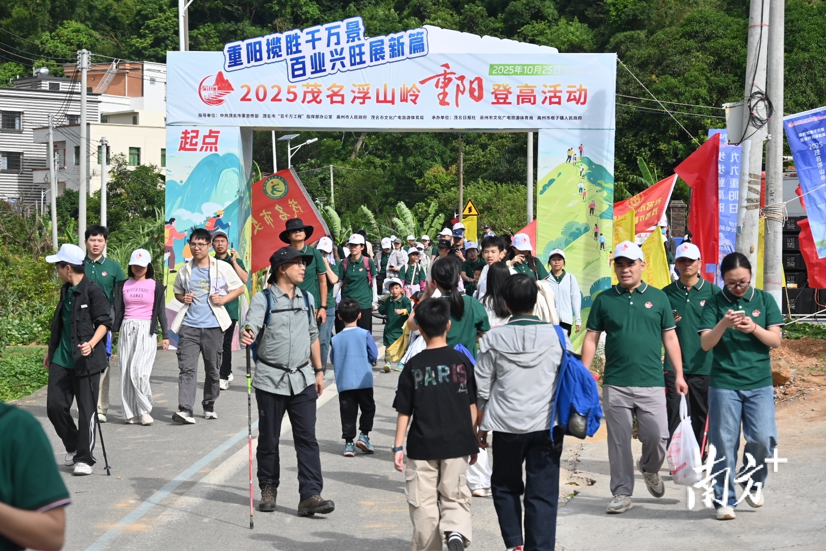 此次活动精心设置两条线路,串联起好心园、田园农庄、浮山冼太庙、浮山驿站等多个特色节点。沿途关键节点,“百县千镇万村高质量发展工程”主题展示和打卡点引人驻足。一群大学生不停用手机拍照记录,赞叹浮山岭风光,更希望将这里的见闻分享出去,“让更多人感受到登高的意义,看见茂名的发展。”