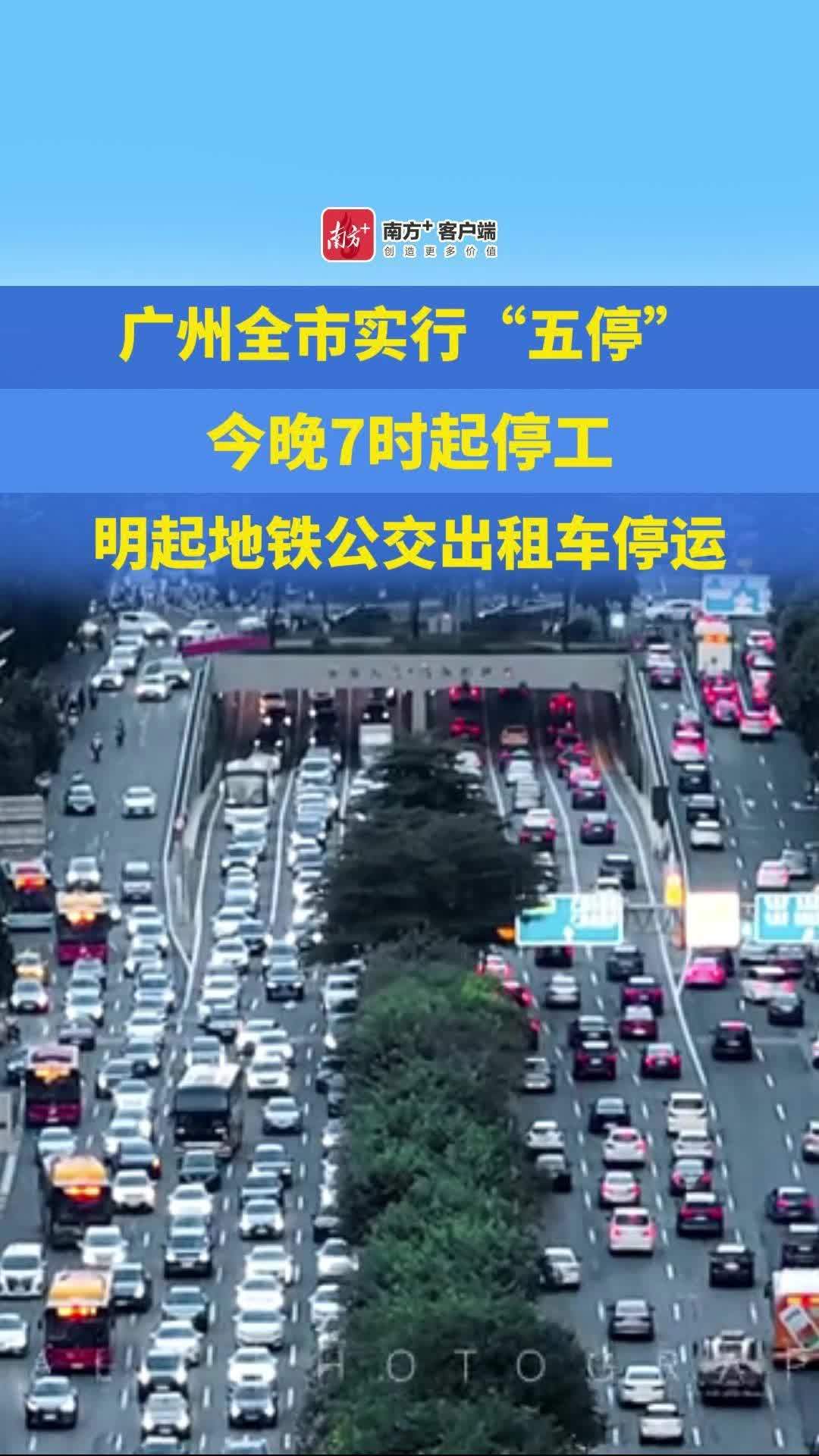 广州发布“五停”通告,今天19时起全市停工,24日0时起公共交通停运