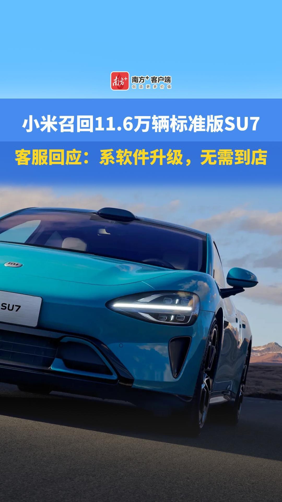 小米召回11.6万辆标准版SU7,客服回应:系软件升级,无需到店