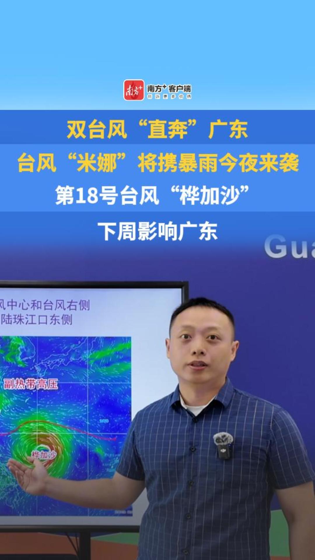 双台风“直奔”广东,台风“米娜”将携暴雨今夜来袭,第18号台风“桦加沙”下周影响广东