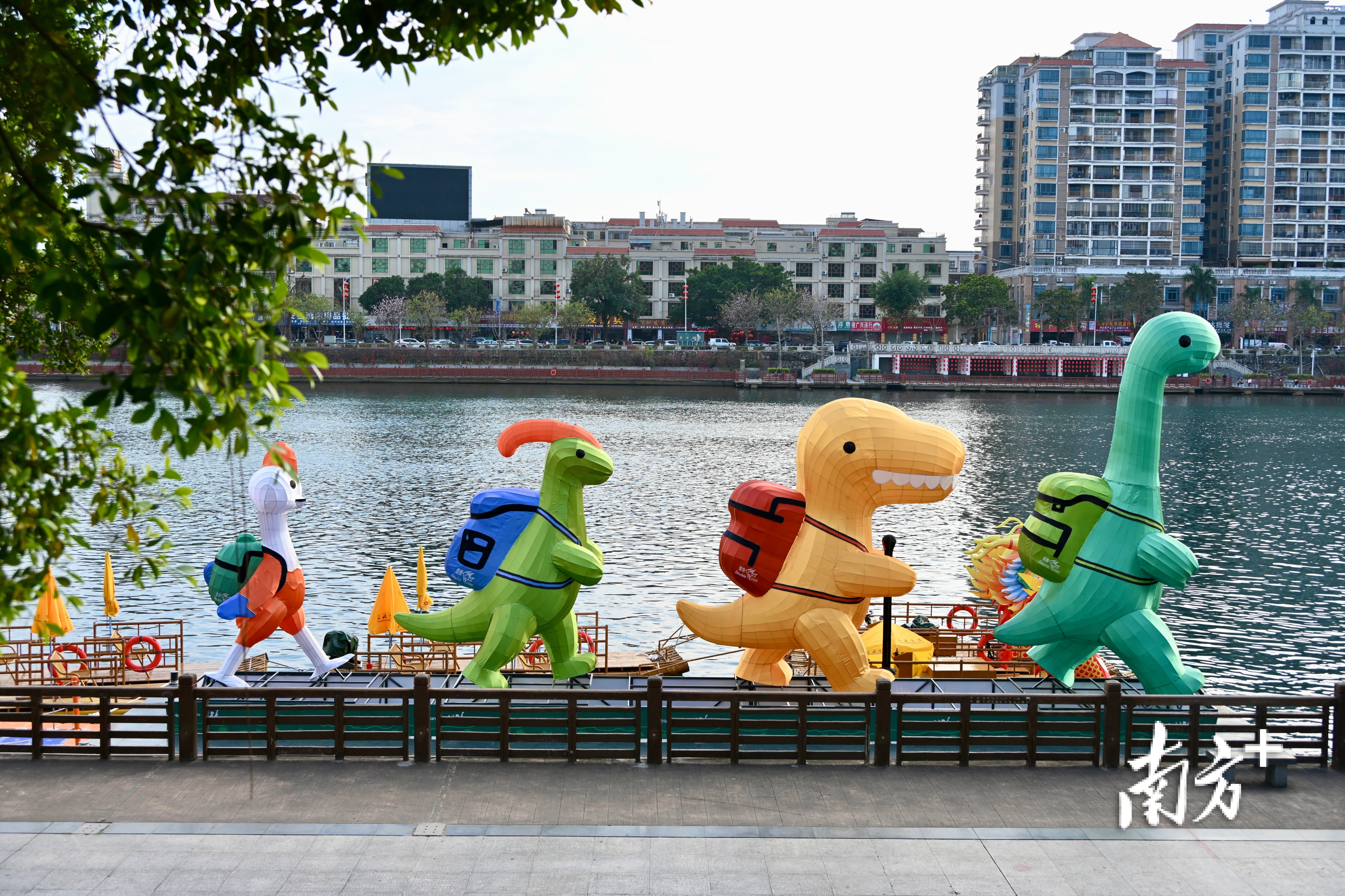 河源城市IP“四小龙”矗立在新丰江畔。