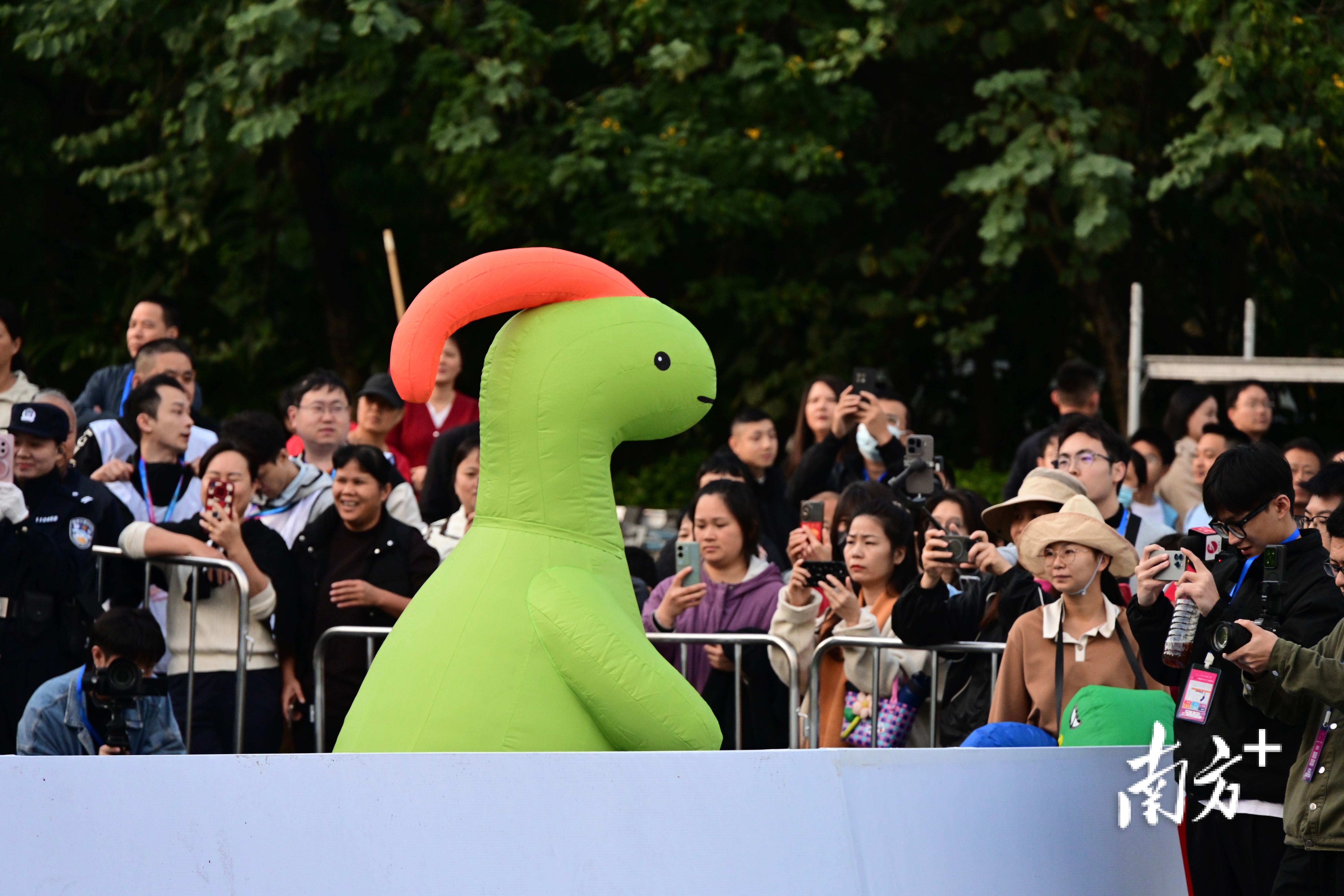 亮相万绿湖马拉松现场的河源“四小龙”,受到市民游客欢迎。