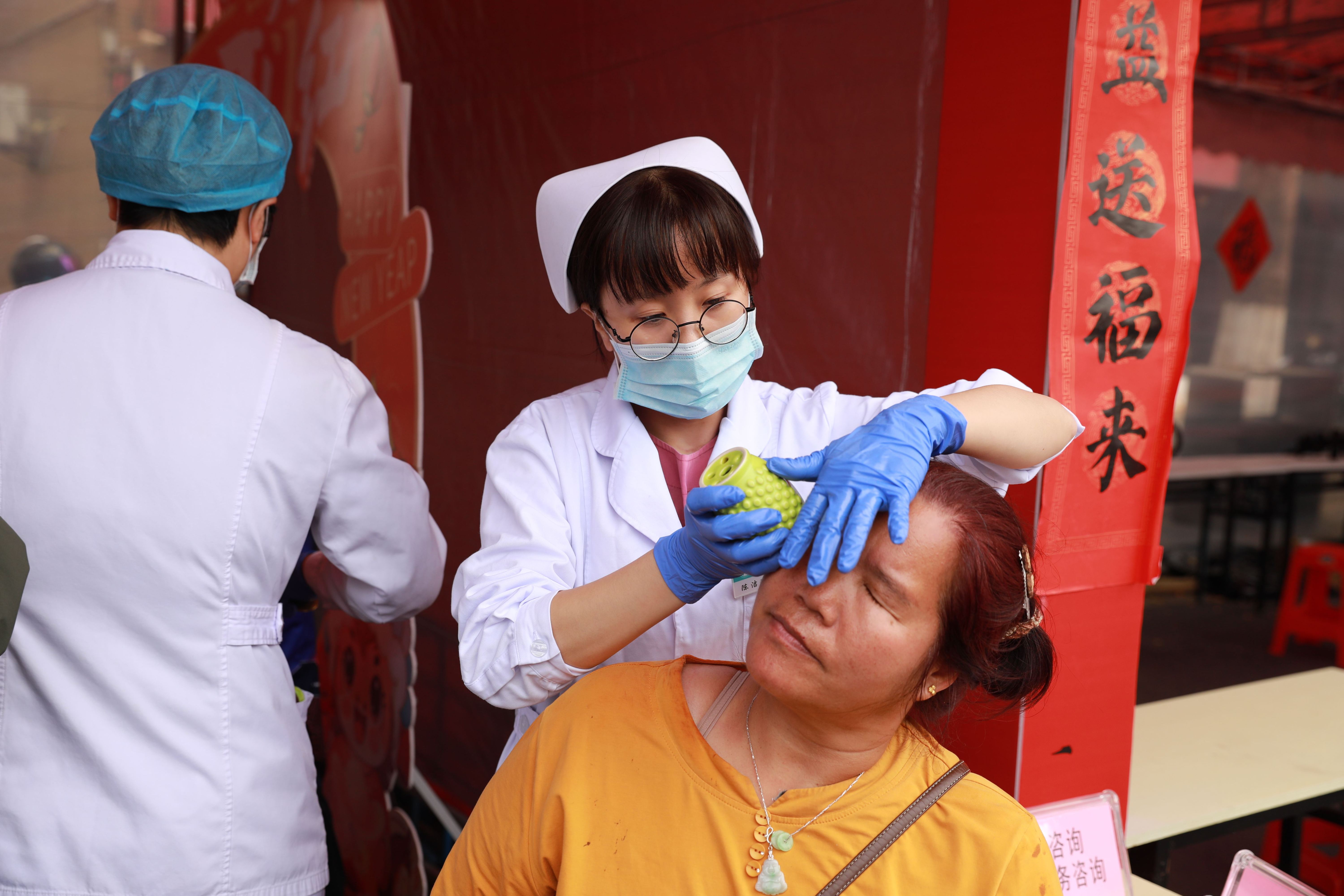 活动现场设置多个体验区域,引来市民驻足。在中医外治法体验区,火龙罐、温通刮痧、面部美容刮痧等项目备受欢迎。针对花市摊主久坐劳累、市民逛花街腿脚酸痛等情况,志愿者运用温通刮痧快速舒缓肌肉劳损,以火龙罐温通经络、驱散疲惫。面部美容刮痧区则吸引了不少年轻市民,玫瑰精油搭配轻柔手法,体验后气色红润、状态焕新,体验者纷纷感叹“中医美容真实有效”。