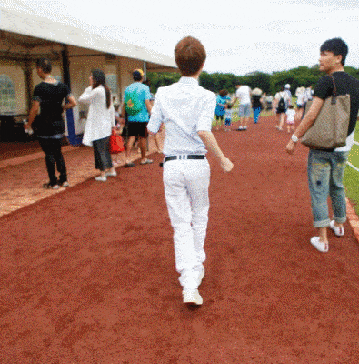 脚尖朝内,迈步像在画圈,两条腿就像圆规一样。走路时膝盖会互相摩擦,甚至两腿完全交叉。