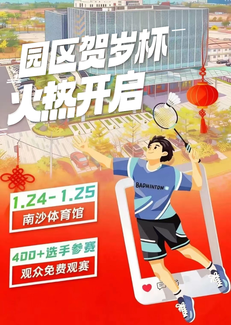 1月24日至25日,一场南沙区全民健身赛事即将在南沙体育馆开赛。“园区贺岁杯”南沙区羽毛球混合团体邀请赛,旨在以运动凝聚产业力量,以赛事激发区域活力。