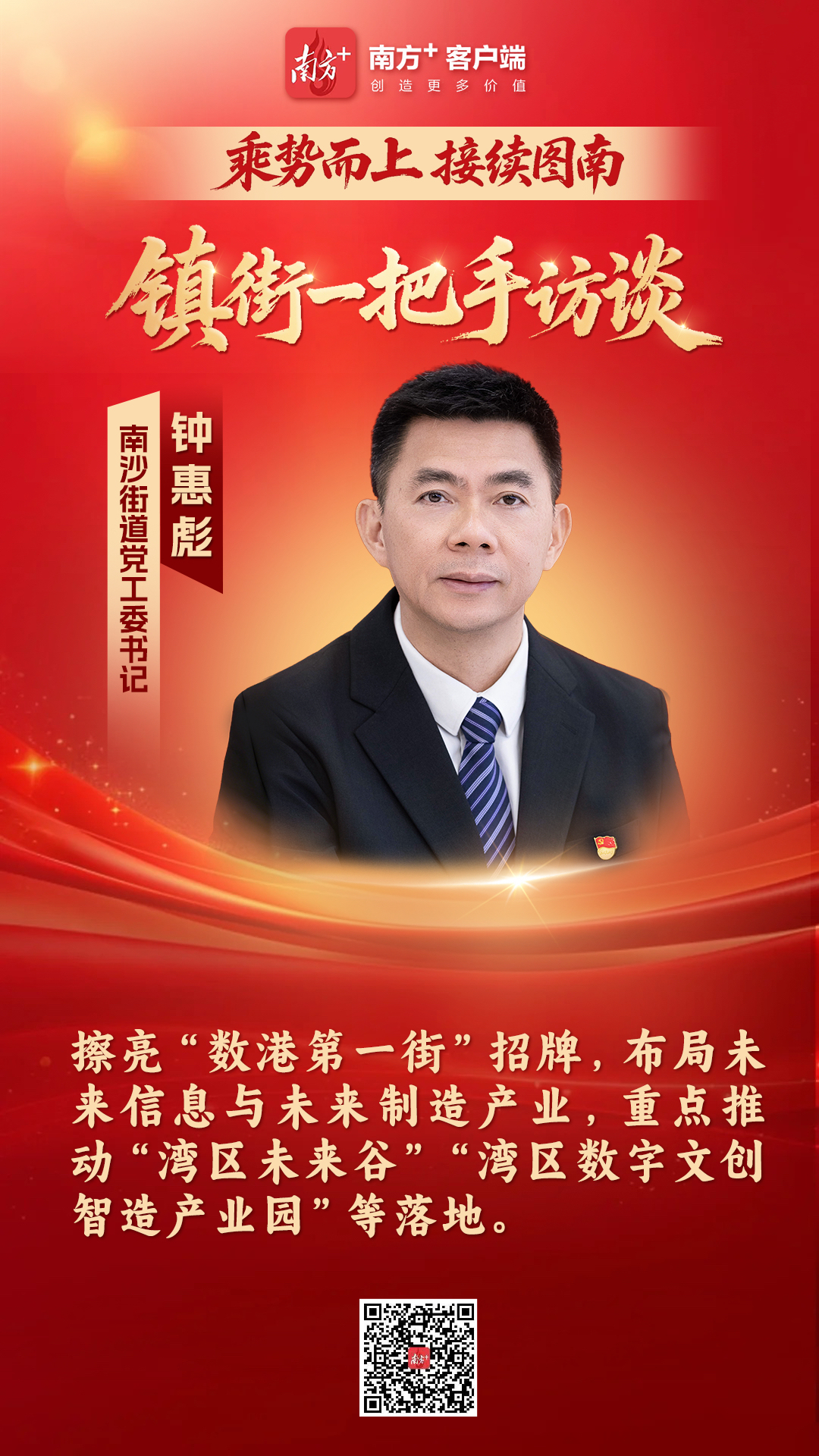 钟惠彪:南沙街道将立足产业基础与资源禀赋,聚焦四大方向,推动产业特色化、差异化发展。