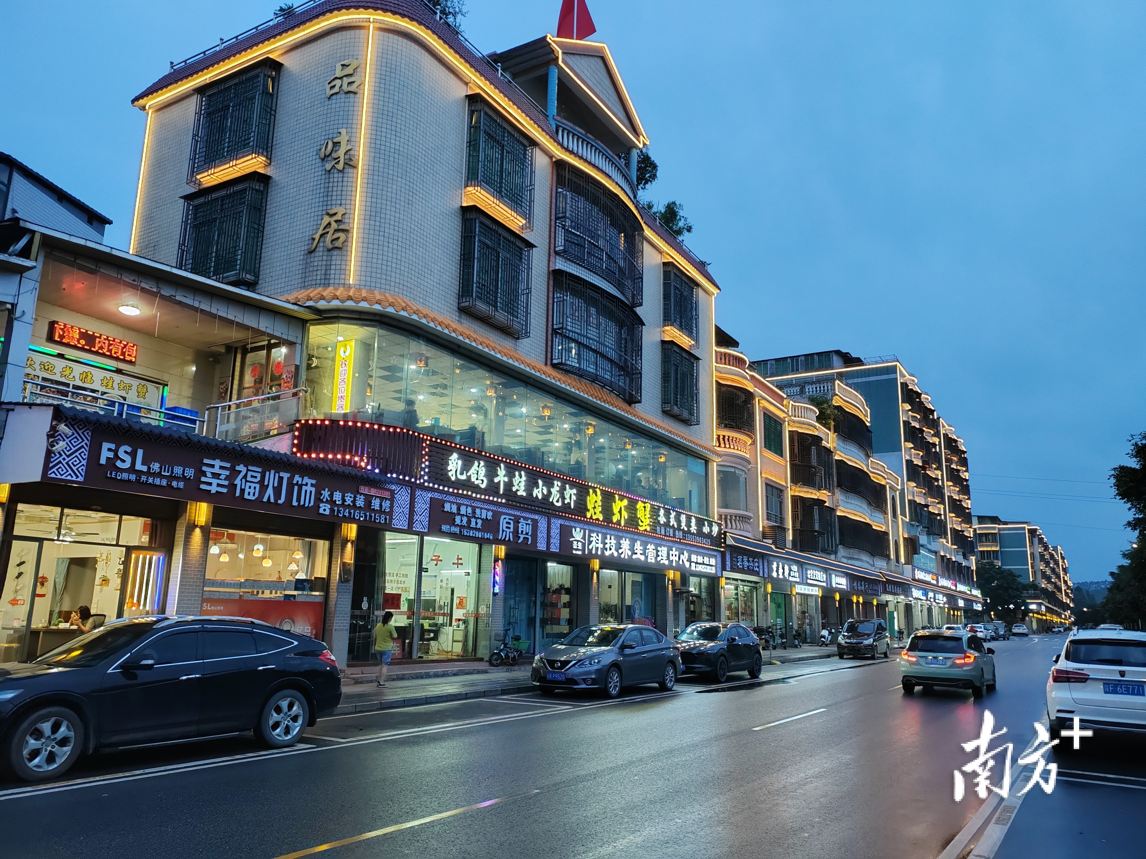 源潭镇沿江二路美丽示范主街夜景。源潭镇供图