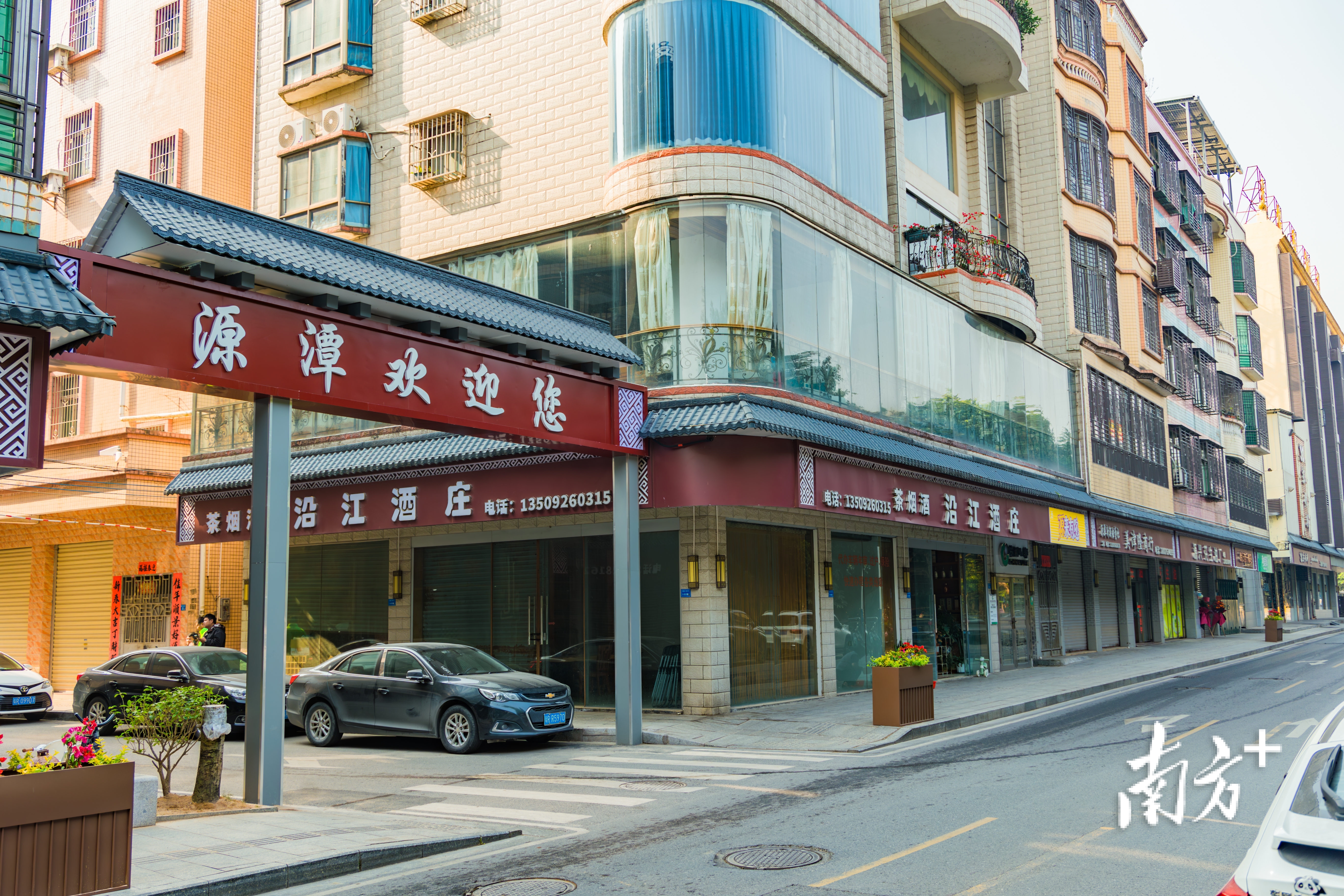 改造后,房屋外立面亮丽美观、街面整洁有序,“三线”整治入地。源潭镇供图