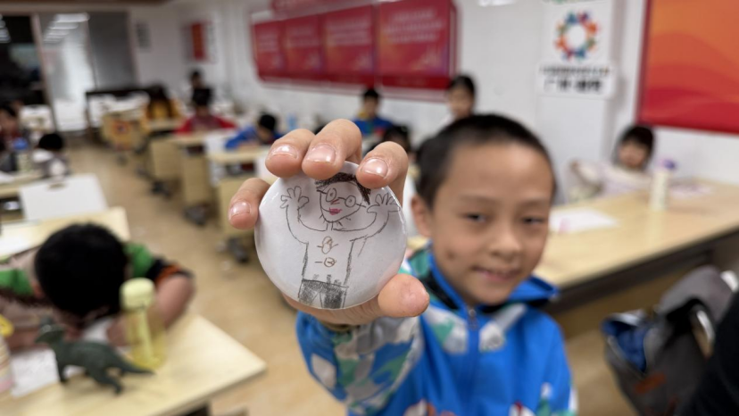 说到自己的父母,小俊尤其自豪。“我去看过爸爸妈妈上班的地方,他们戴着白色的头盔,戴着手套,广州很多大桥,还有广州地铁,都是我爸爸妈妈修的。”现在小俊的爸爸,是一名快递员。他要用老师给的圆形小卡片,画下爸爸的模样:一双宽厚有力的大手,一圈扎人的胡茬,身上穿着的是亲子服。