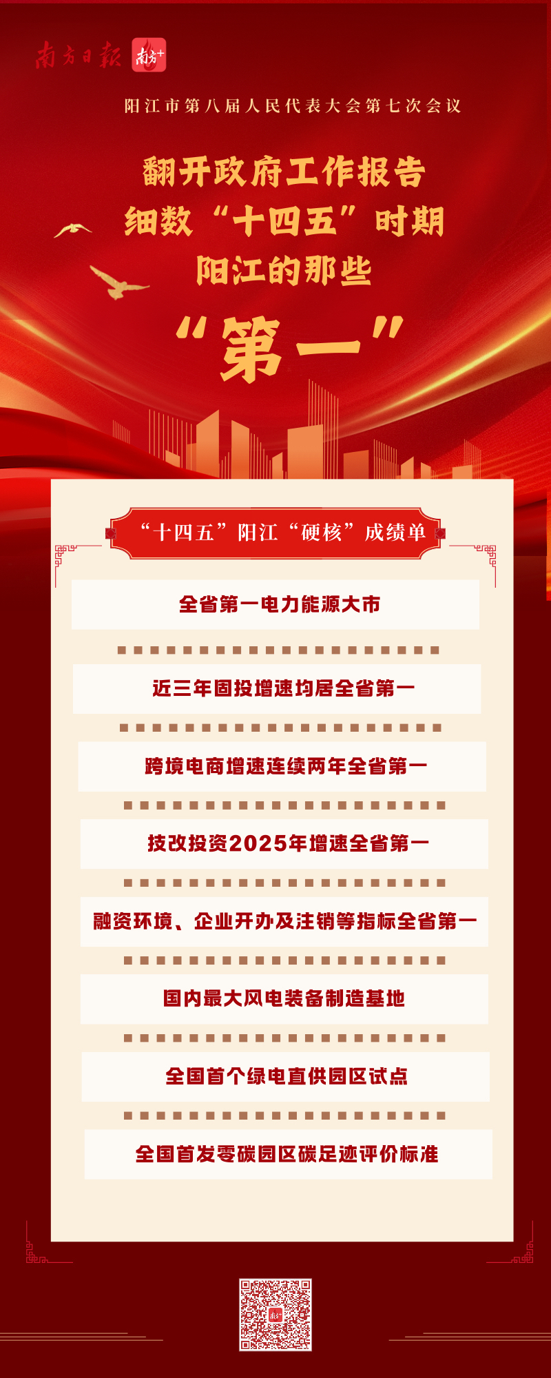 2月4日上午,阳江市第八届人民代表大会第七次会议开幕,阳江市市长余金富作政府工作报告。报告显示,“十四五”时期,阳江顶住多重挑战、攻坚克难,经济社会高质量发展迈出坚实步伐,在多个领域收获“第一”“唯一”“首个”等硬核成绩,生动展现出“绿能之都、海丝名城”向上突围的蓬勃气象。
