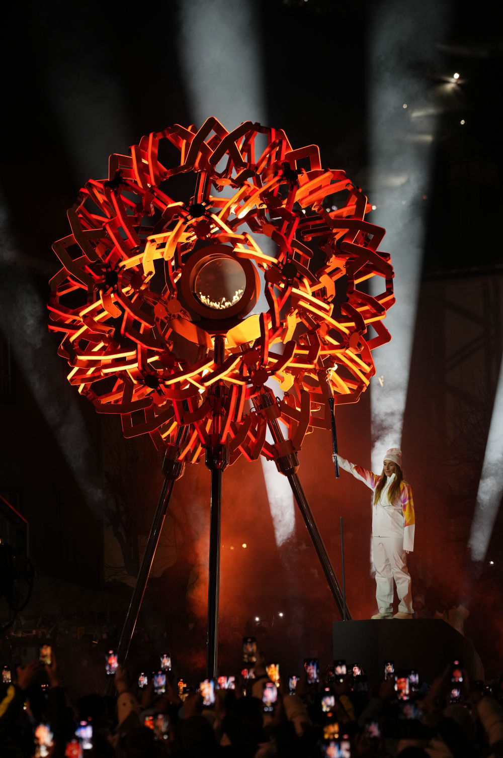 ↑主火炬在米兰和平拱门和科尔蒂纳丹佩佐迪博纳广场同步点燃。