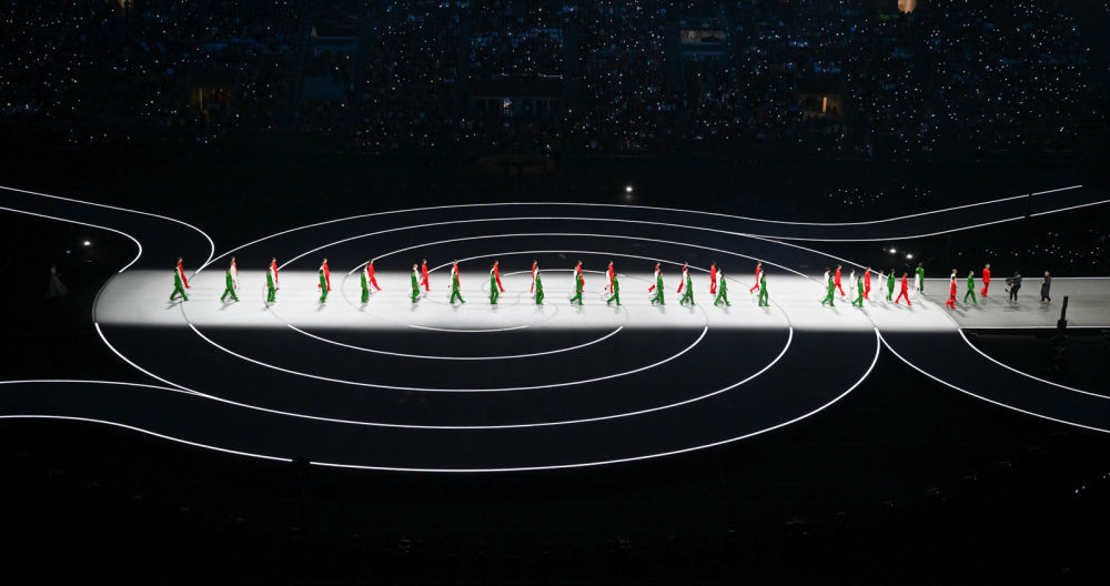 ↑意大利体育代表团在开幕式上入场。