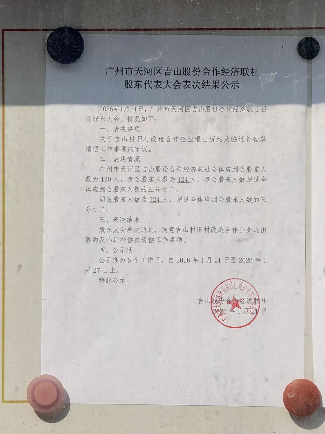 广州天河区备受瞩目的吉山村旧村改造项目,近日迎来重大变局。原合作企业富力地产与合景泰富组成的联合体,经村集体股东大会表决,已正式退出这一总体量近289万平方米的旧改项目。