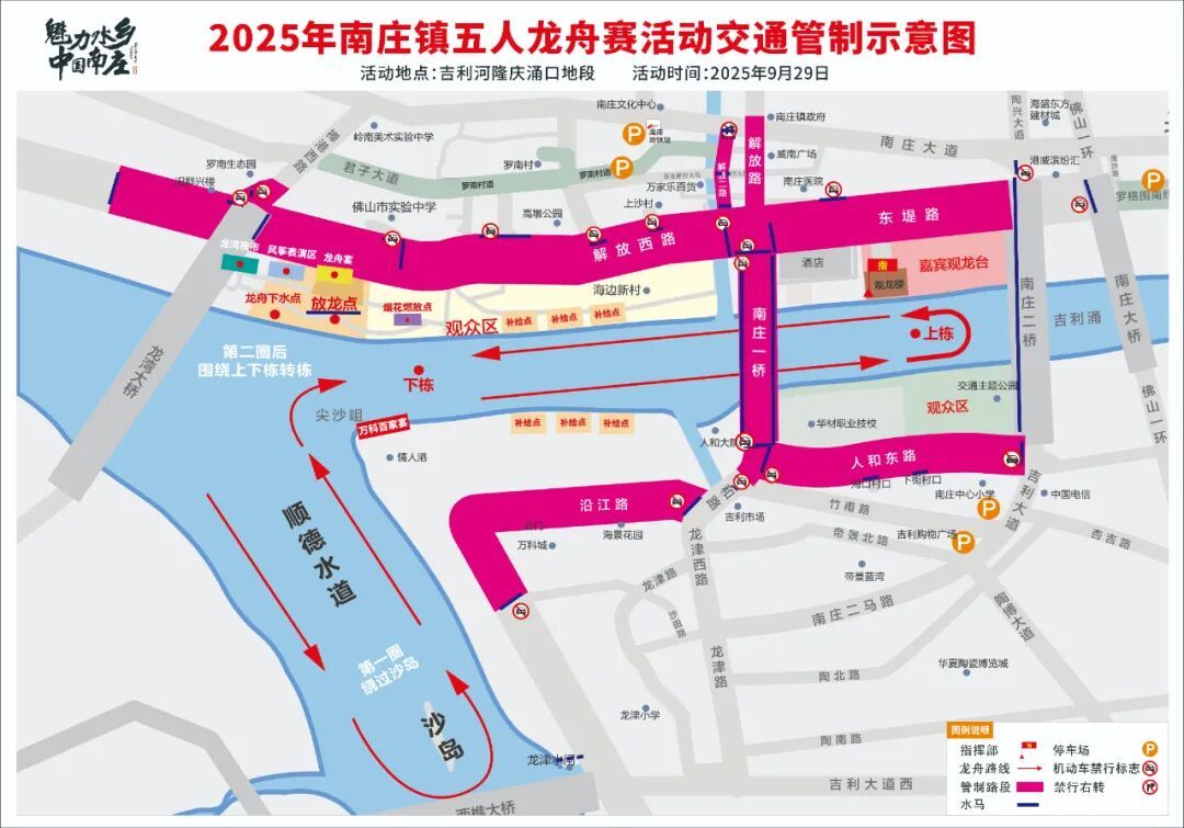 1、东堤路(南庄一桥桥底至南庄一桥)、人和东路(南庄二桥桥底至南庄一桥)、解放西路以西(南庄水利所至龙湾桥底的吉利河南北的河堤路段)、沿江路(人和路至龙津村光明大道河堤路段)禁止社会车辆通行,允许应急救援车辆、活动嘉宾车辆凭借有效证件进入,指引参赛人员、围观群众将车辆规范有序地停放在周边开放停车区。