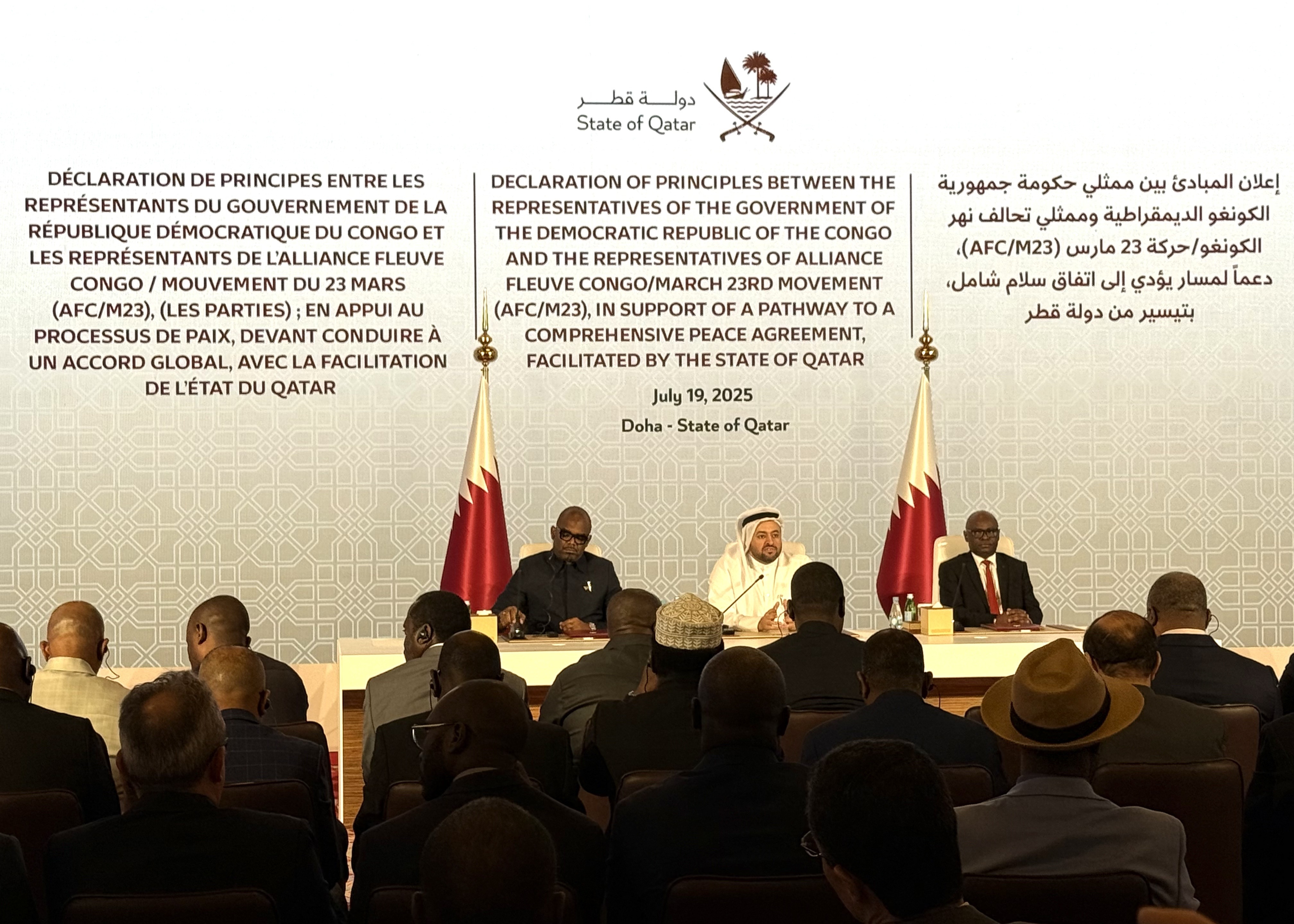 当地时间7月19日,在卡塔尔斡旋下,刚果(金)政府与该国反政府武装“M23运动”在卡塔尔首都多哈就结束冲突签署一项原则声明。