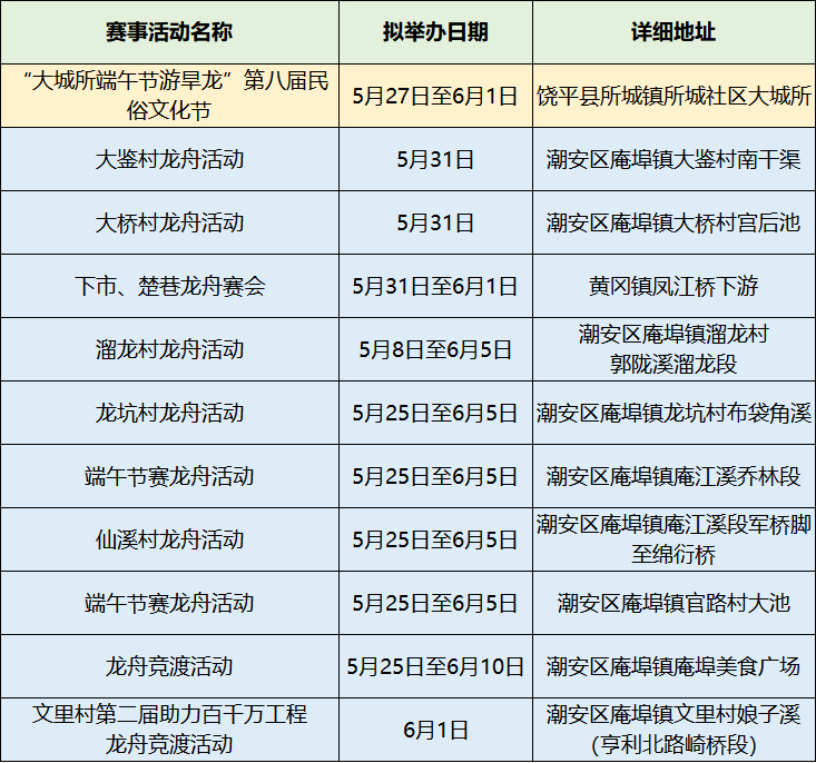 内容:新塘镇东华村、新何村、甘涌村、坭紫村、群星村龙舟景活动。