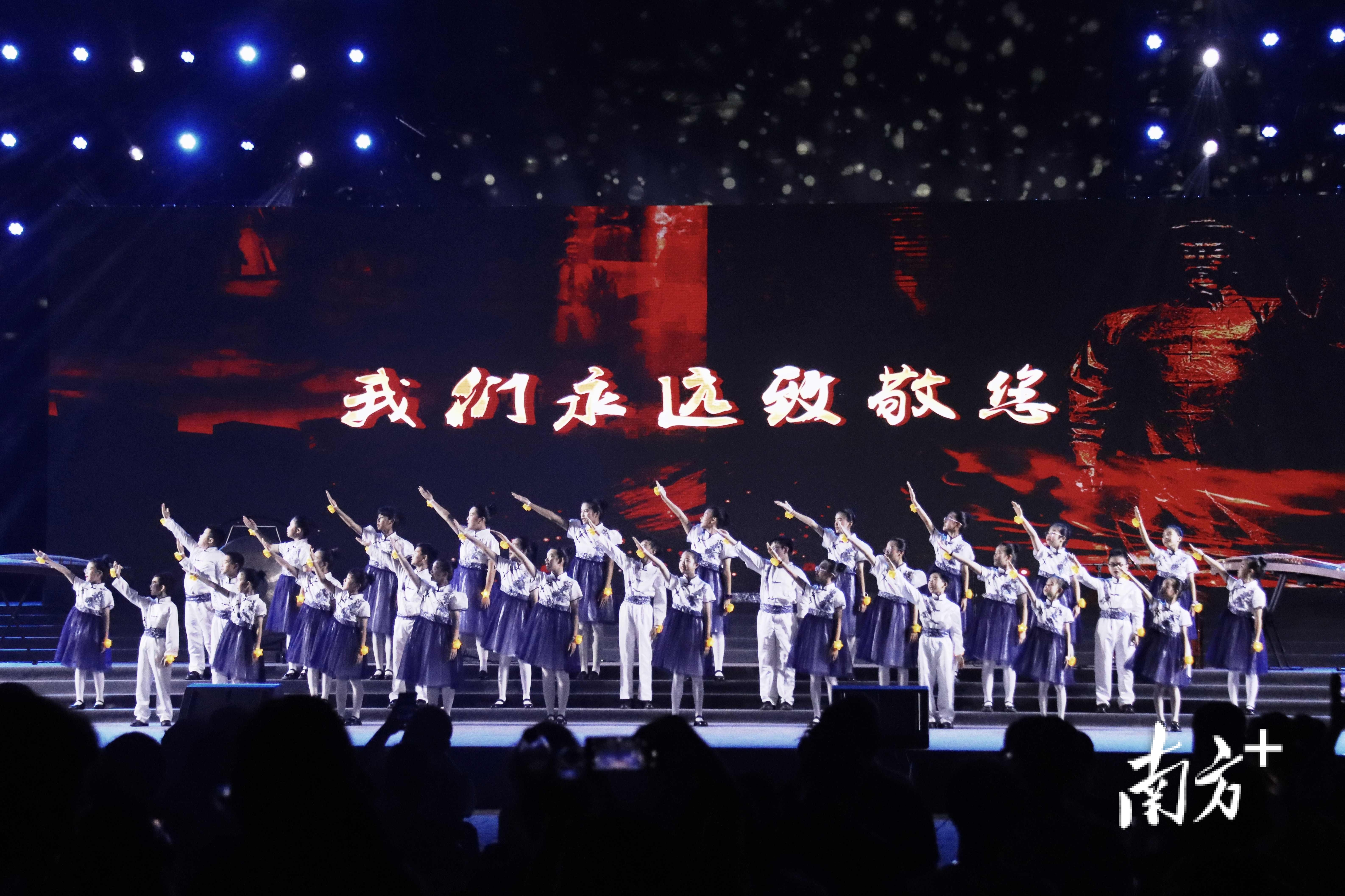 音乐会在《薪火长明》尾声中达到情感高潮,民乐合奏《战弦铮鸣》激越昂扬,气势恢宏,让林则徐精神穿越时空,激励新时代的人们书写属于自己的传奇。“林则徐精神传承学校”虎门镇东方小学的学生,唱响由林则徐后人林鸿汉联合作词的童声合唱《致敬林则徐》,象征着民族精神的代代相传。当小演员手上温暖的灯饰如星河般点亮,历史与现实的深情对话在这一刻达成。