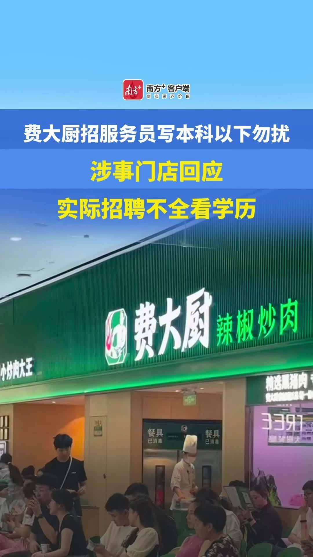 费大厨招服务员写本科以下勿扰,涉事门店回应