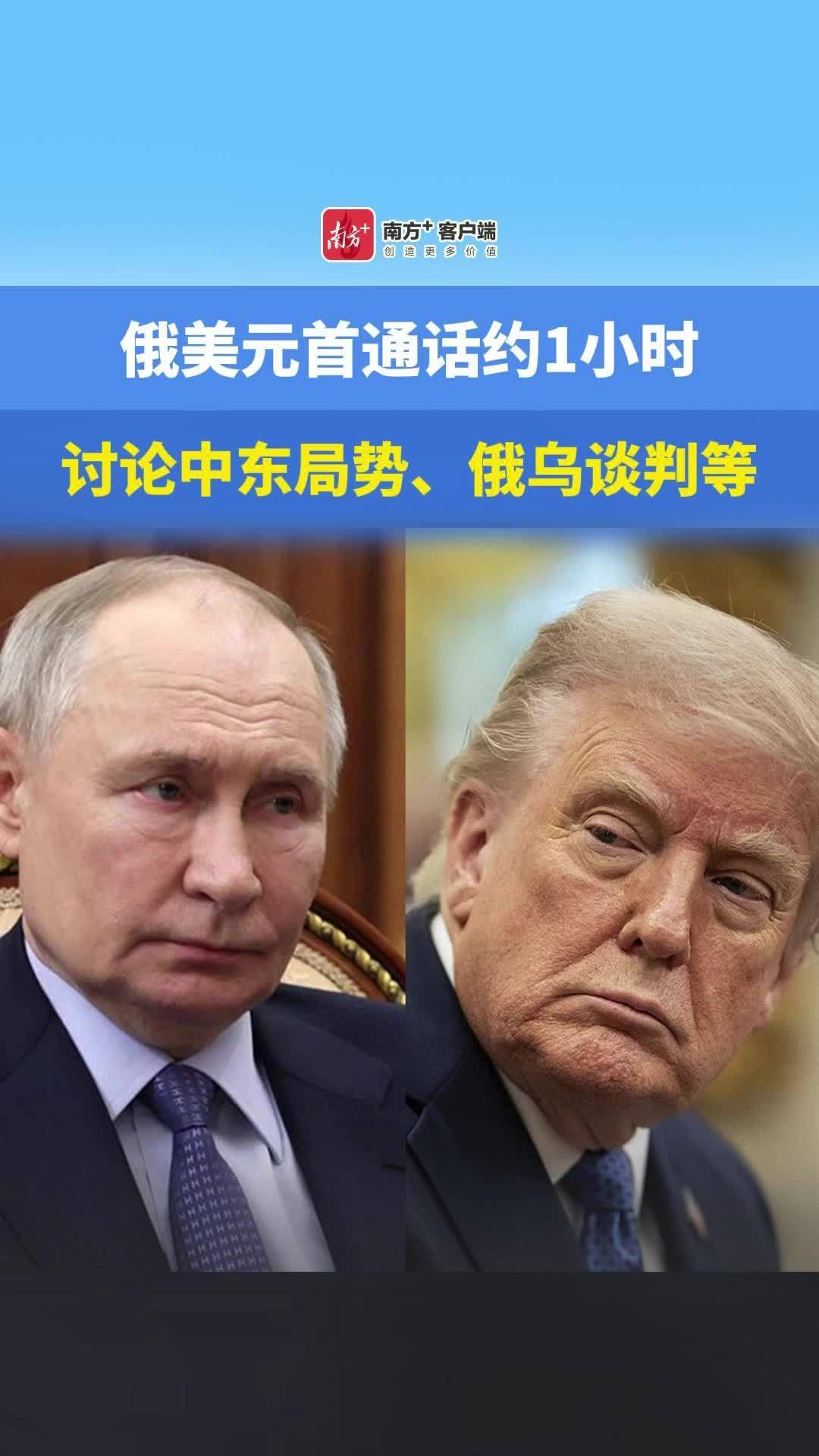 俄美元首通话约1小时 讨论中东局势、俄乌谈判等