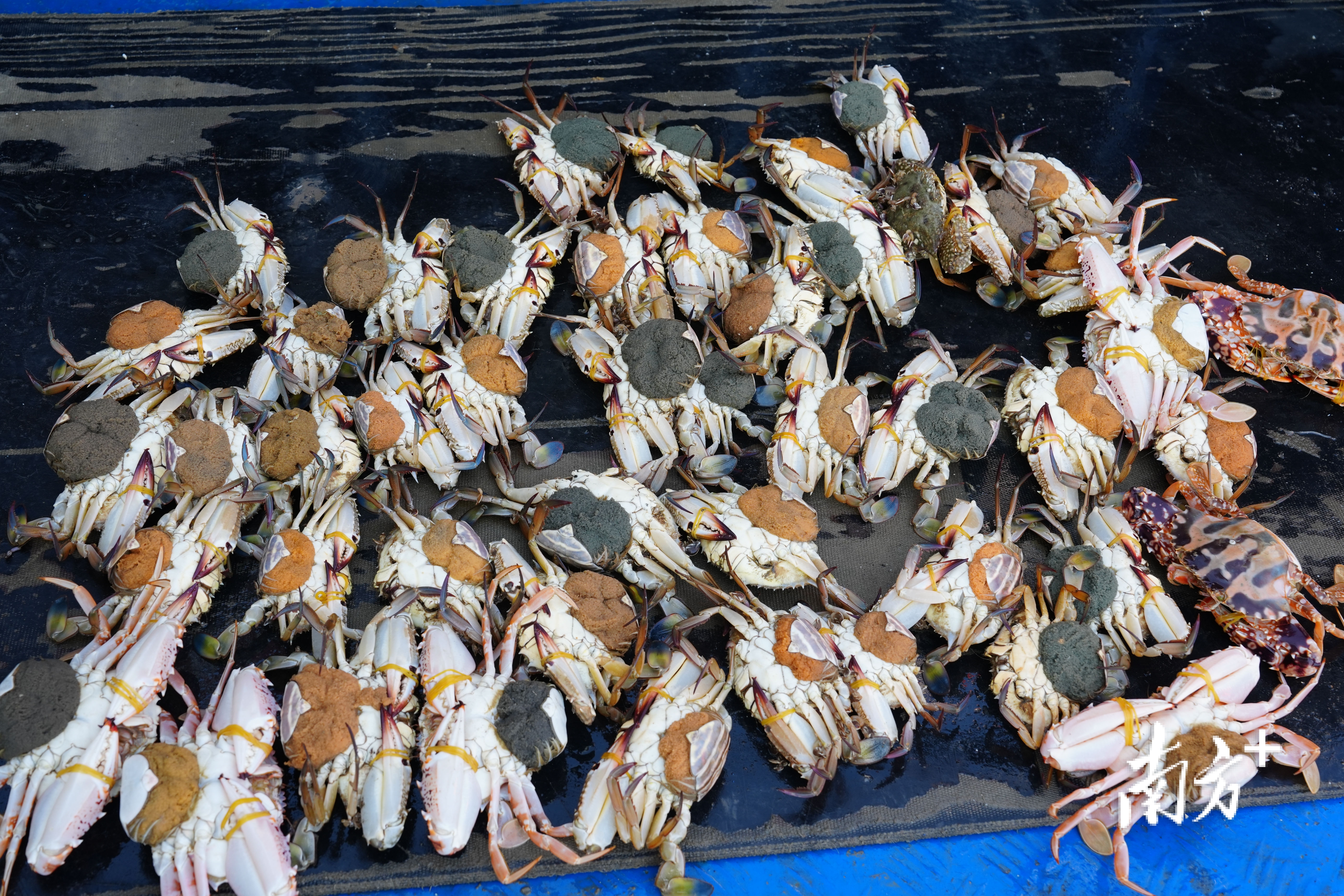 茂名海警局严厉打击伏季休渔非法捕捞行为,查获的螃蟹中有许多抱籽母蟹