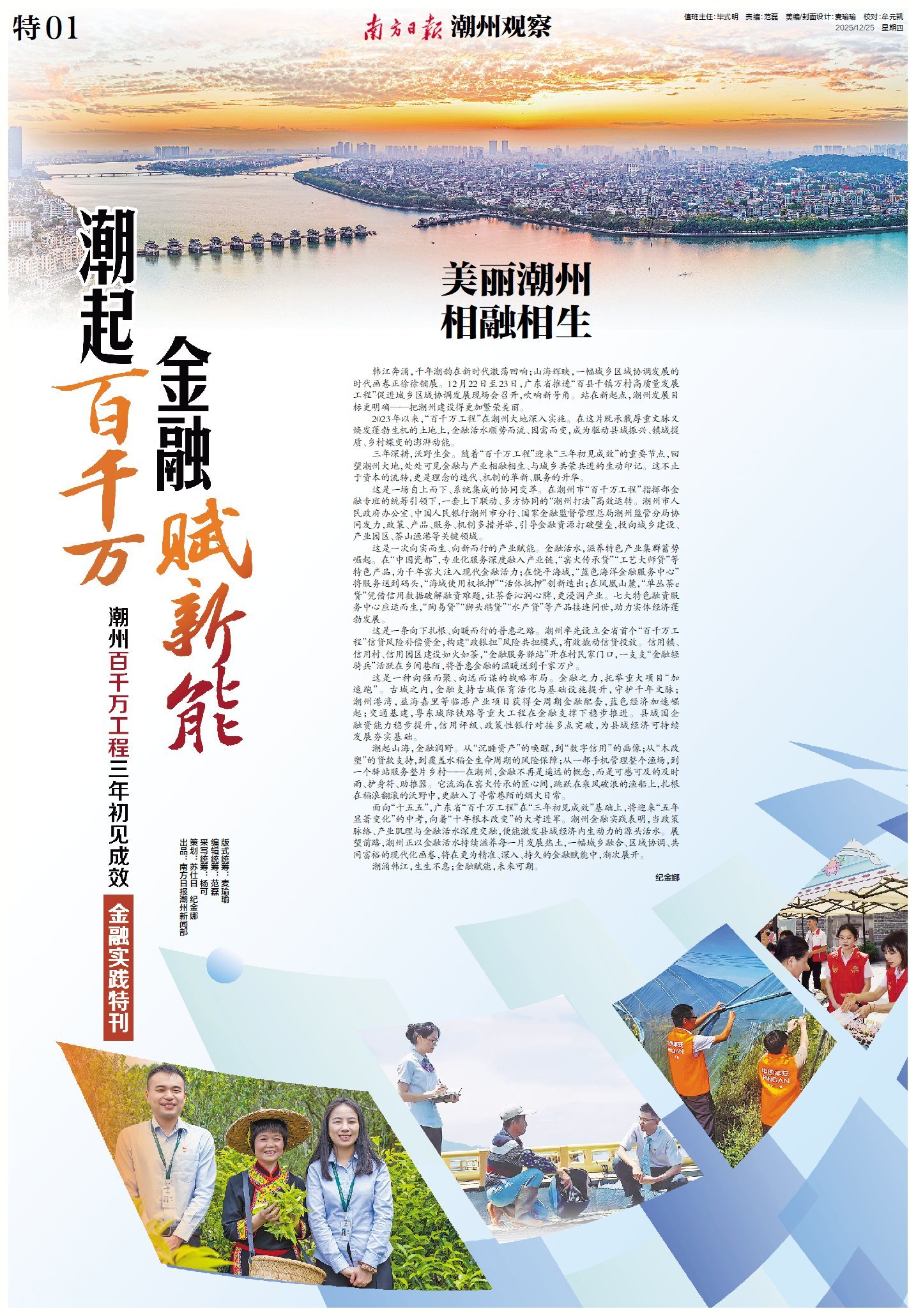 在潮州市“百千万工程”指挥部金融专班的统筹引领下,一套上下联动、高效协同的工作机制加速运转,一系列精准适配、服务实体的创新举措扎实落地,一批紧扣产业、惠企利民的金融产品持续涌现。金融活水,正朝着城乡建设、海岛渔港、茶山村落、产业园区等重点领域与薄弱环节奔涌注入,为区域发展输送源源不断的动力。详情