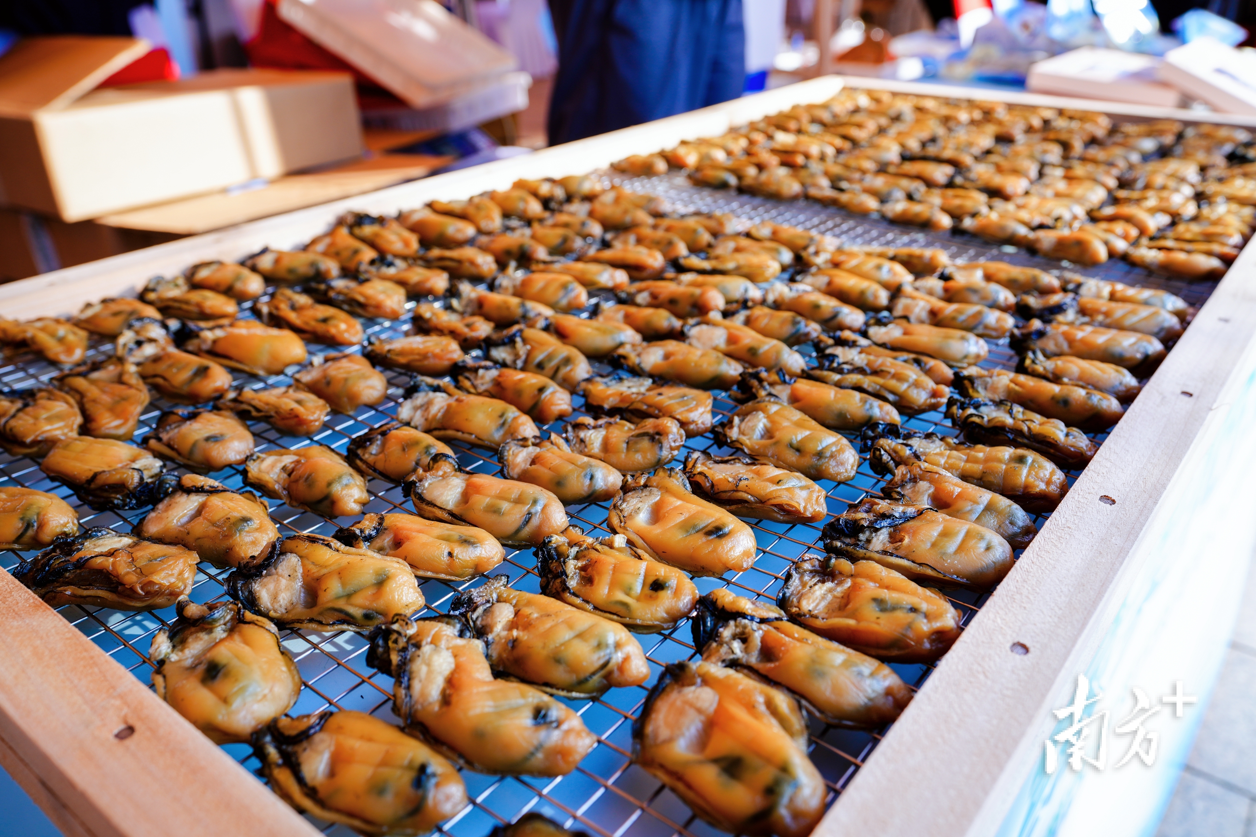 养殖端提质升级,加工端也在向标准化、高附加值迈进。在阳西县程村金质原生态蚝业有限公司的车间里,自动化设备正有序运转,生蚝经过清洗、分拣、冷冻等工序,变身成速冻蚝、蚝豉、蚝油等产品。