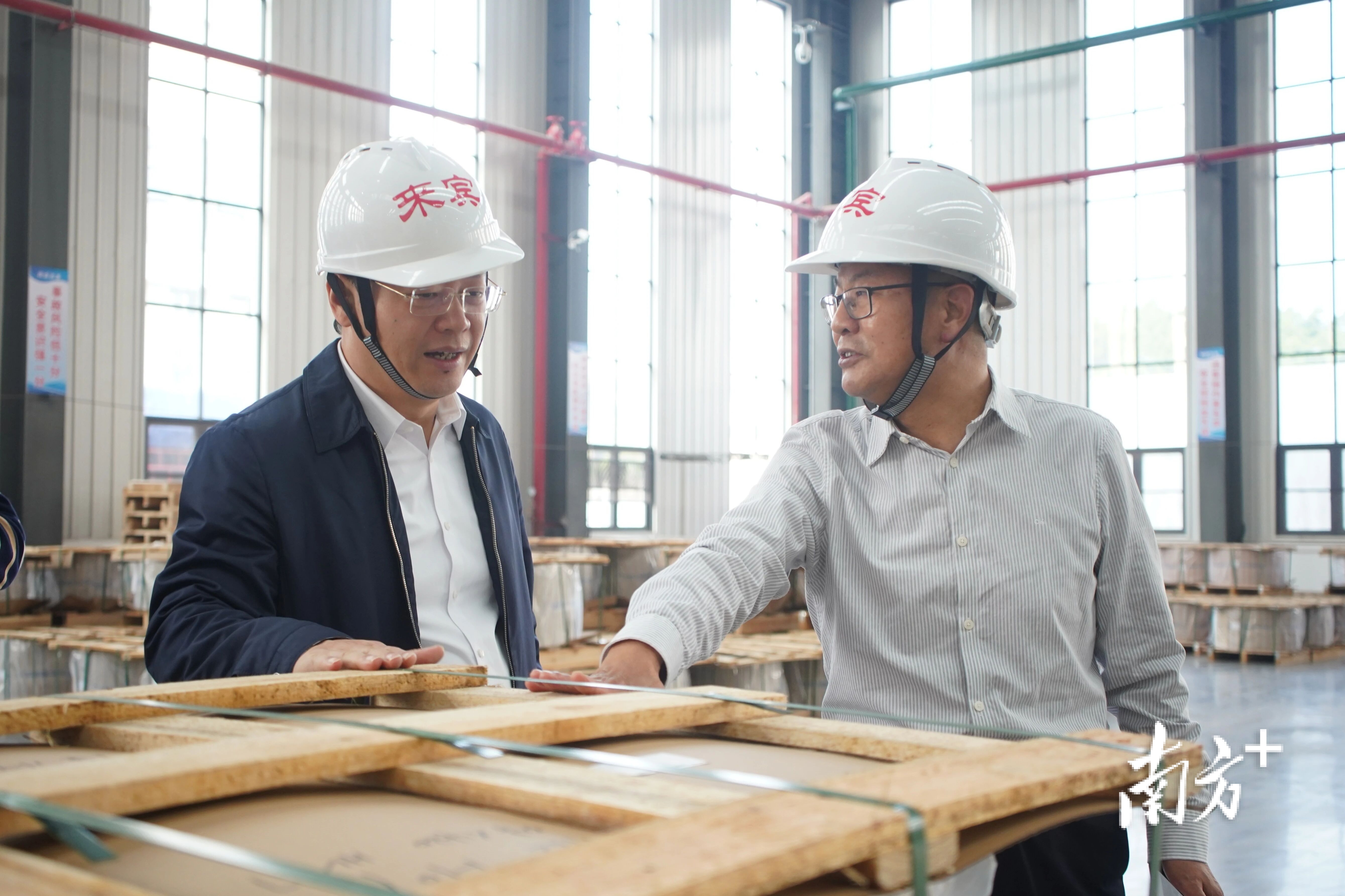 在清远楚江高精铜带有限公司,刘建俊实地调研公司年产6万吨高精密度紫铜带箔项目,详细询问项目推进情况及当前需要协调解决的问题。