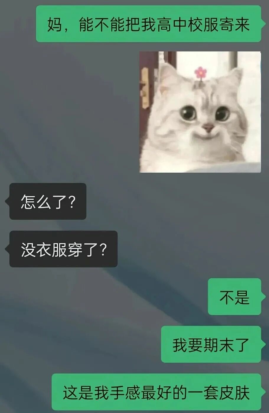 “妈,能帮我把高中校服寄来吗?”